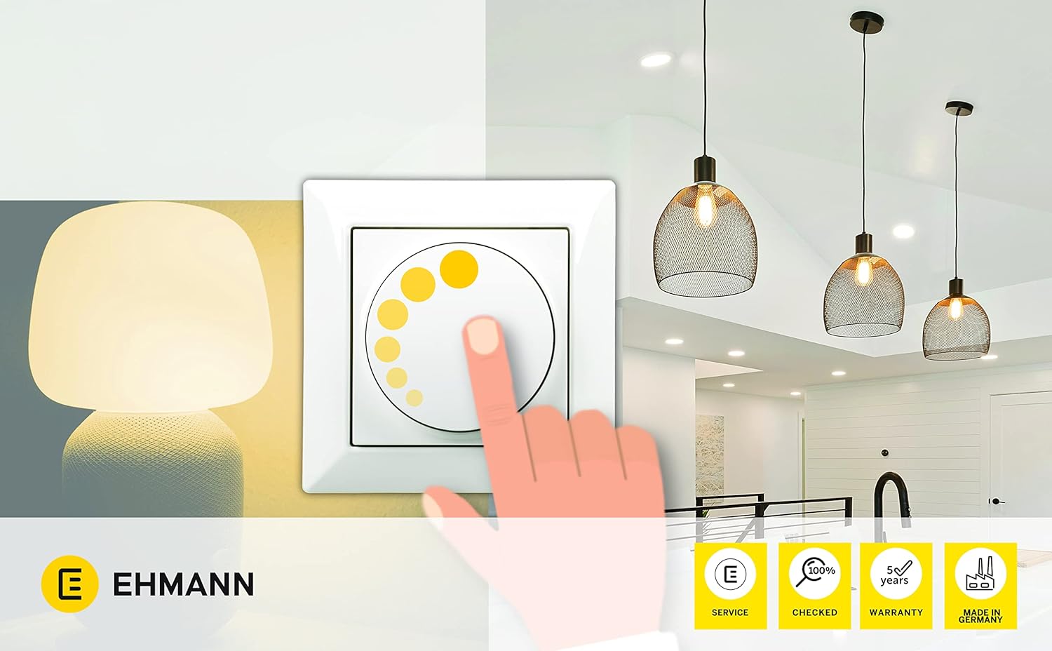 • Geeignet für dimmbare LED-Lampen, Glüh-, HV- und NV-Halogenlampen mit magnetischem Transformator, EHMANN Service: LED Empfehlungsliste