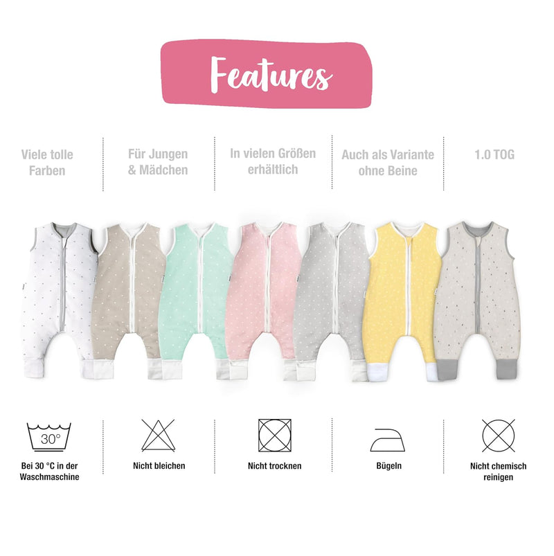 - LEICHT UND PLATZSPAREND: Der Babyschlafsack ist leicht und nimmt wenig Platz ein, was ihn zum idealen Begleiter für unterwegs macht. Der Schlummersack lässt sich schnell und einfach in der Wickeltasche verstauen und ist immer griffbereit.