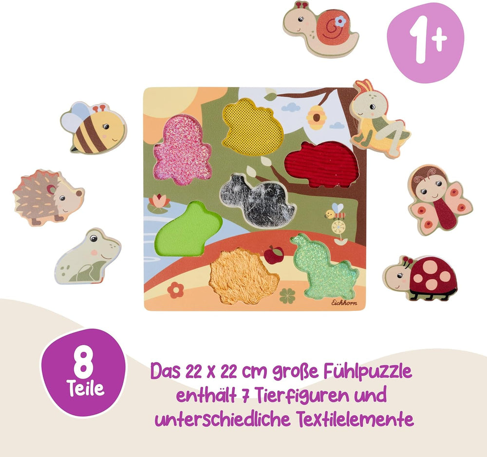 - Liebevolles Design – Die niedlichen Tiermotive und sanften Farben machen das Fühlpuzzle zu einem echten Hingucker im Kinderzimmer.