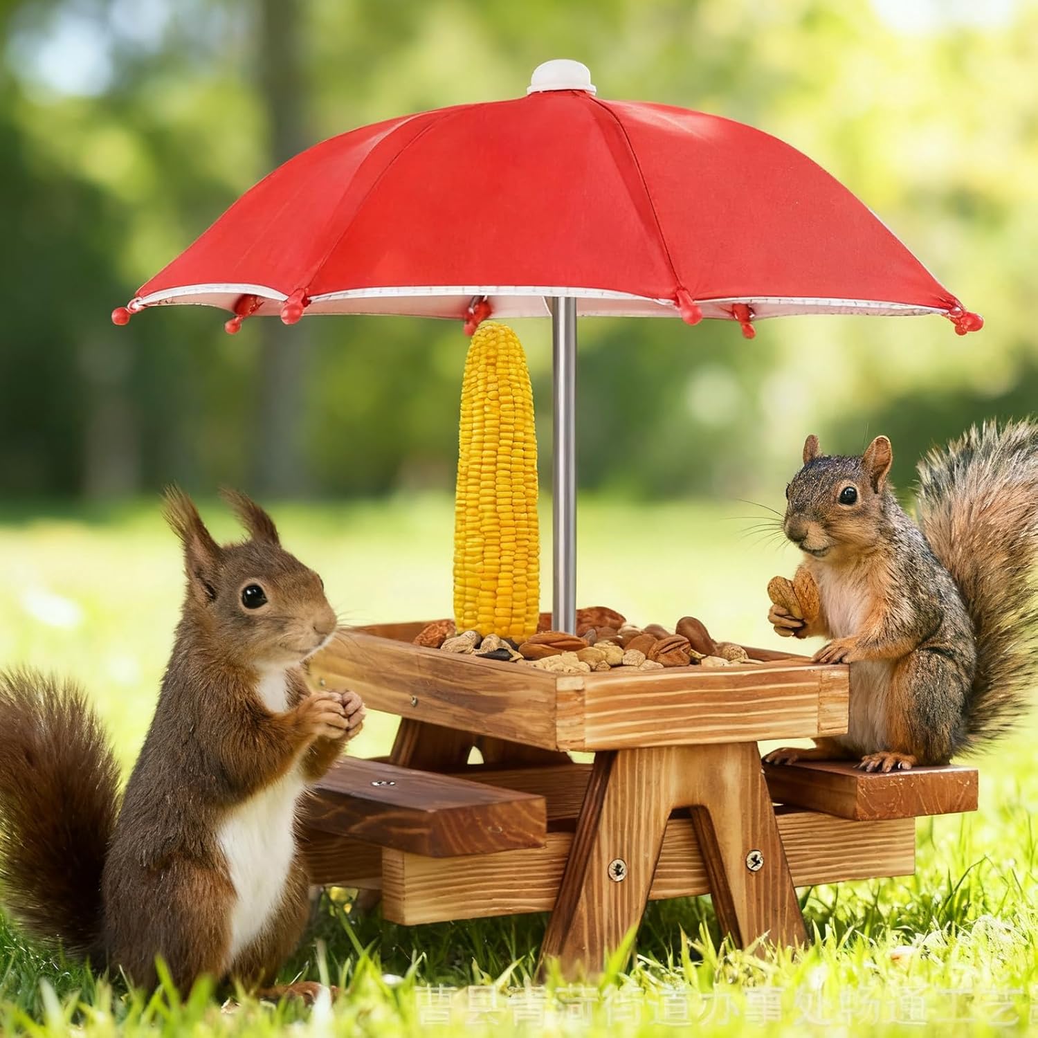 - Eichhörnchen-Futtertisch mit Maiskolbenhalter: Schrauben Sie den Maiskolben auf die zusätzliche Stange, damit Eichhörnchen bequem sitzen und fressen können – natürliche Fütterung leicht gemacht im Eichhörnchen Futtertisch