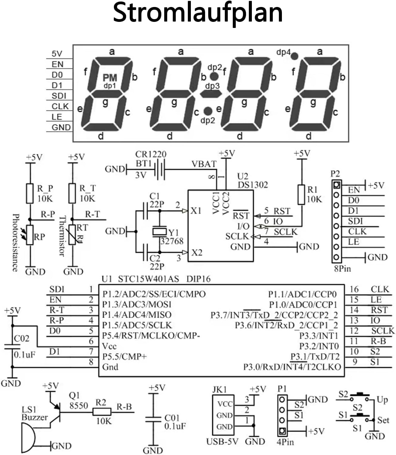 - [Der eingebaute Thermistor misst die Umgebungstemperatur, und der lichtempfindliche Widerstand passt die Helligkeit automatisch an, so dass sich die Uhr an verschiedene Umgebungen anpasst und immer gut lesbar ist. Sie können auch ganz einfach zwischen