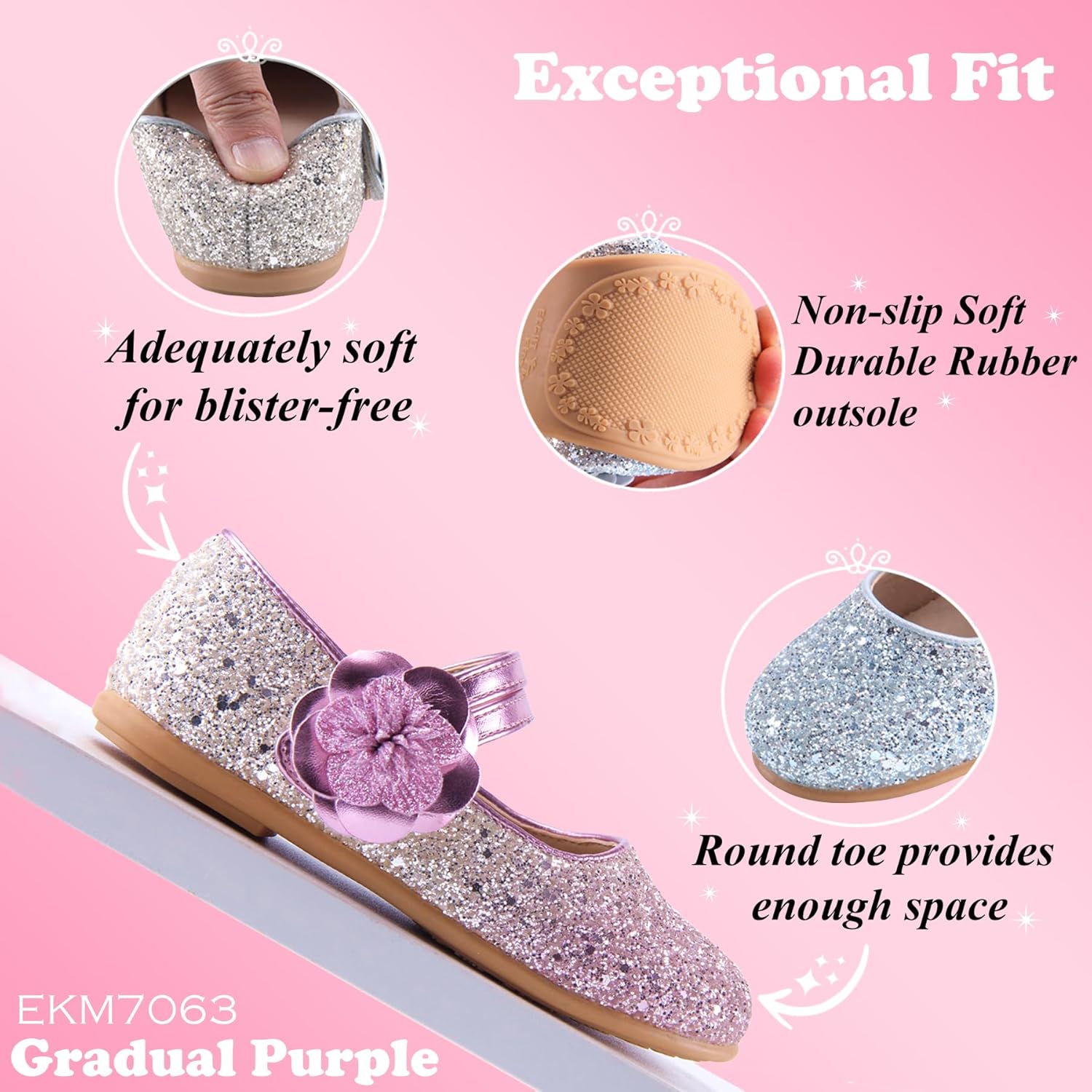 - Grossartig attraktiv: Diese glitzernden und kratzfreien Mikrofaser-Flats für entzückende kleine Prinzessinnen machen ein einfaches Outfit auf Fleek, das zu einer Vielzahl von Stilen und Farben passt. Das Kamelien-Blumenornament strahlt eine zeitlose