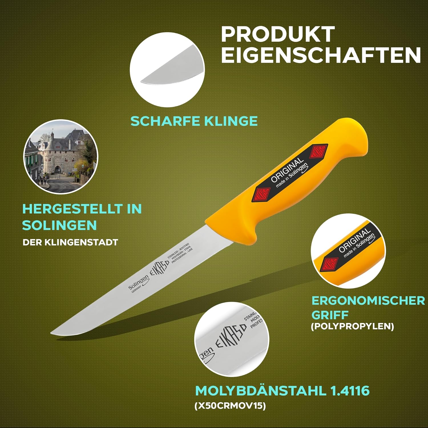 - [Solinger Qualität] Tauchen Sie ein in die faszinierende Welt der Solinger Qualität, die für Exzellenz und Tradition im Messerbau steht. Solingen ist seit Jahrhunderten das Epizentrum deutscher Messerkunst und diese lange Geschichte spiegelt sich in