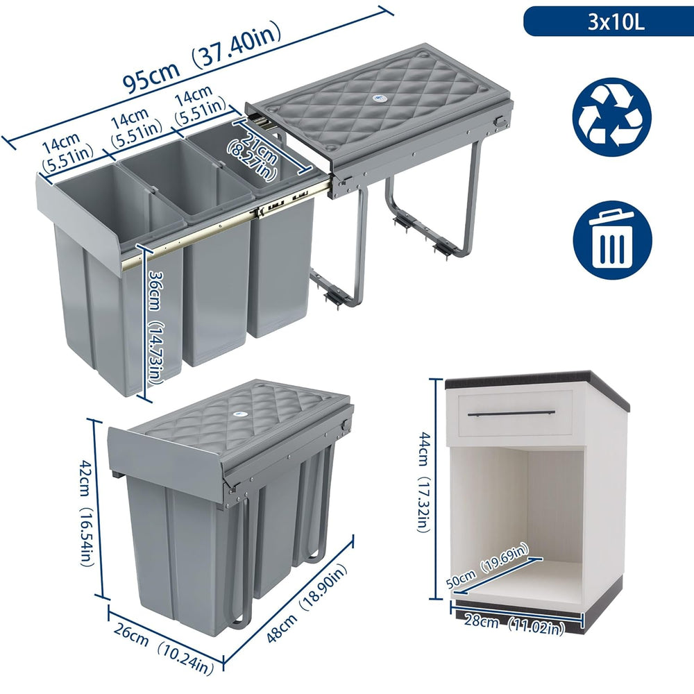 - Einbaumülleimer Küche: Fassungsvermögen: 3 x 10 L, Material: ABS + PP + Eisen, Grösse: 48 x 26 x 42 cm, Farbe: Grau