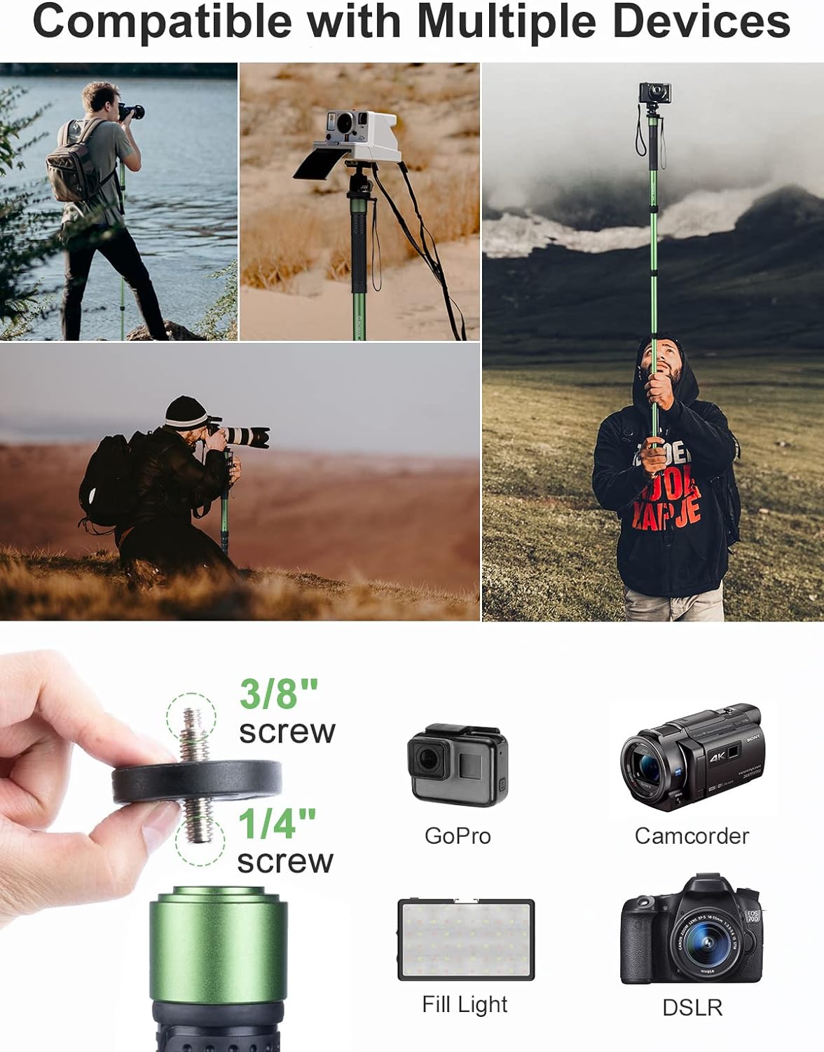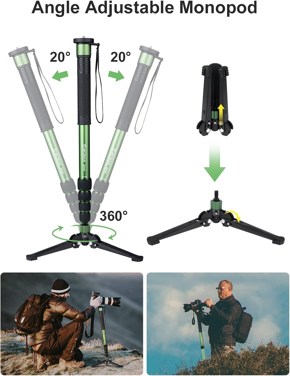• 【Winkelverstellbares Einbeinstativ】Einbeinstativ mit Stativbasis kann 360° Drehung und 20° Neigungspanoramawinkel erreichen. Erfüllen Sie Ihre verschiedenen Fotografie Bedürfnisse und Winkel. Bei der Verwendung des Kamera-Einbeinstativs achten