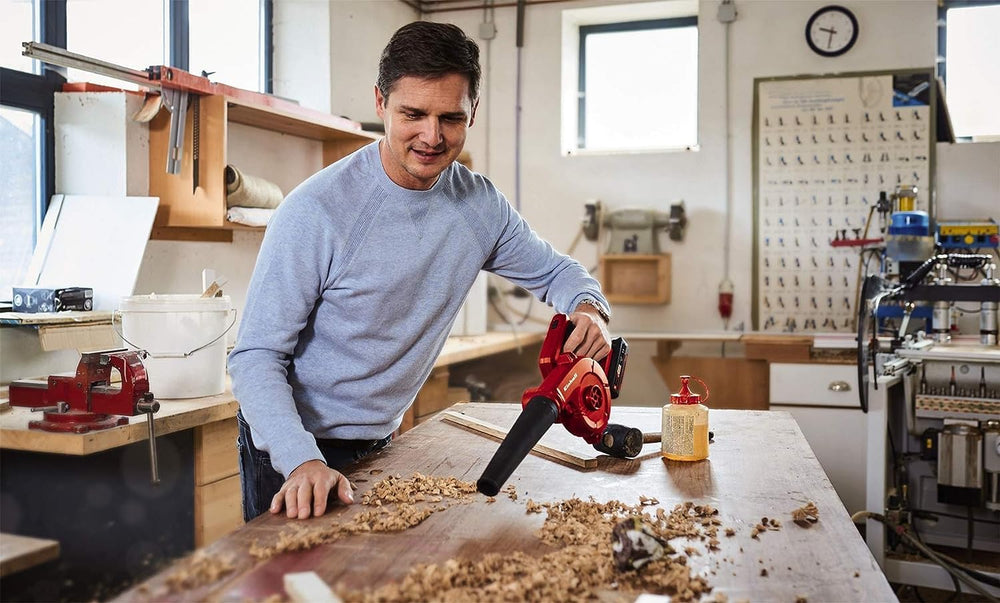 • Einsetzbar ist der Akku-Bläser vielseitig auf der Baustelle, aber ebenso in der Werkstatt und selbstverständlich im Garten. Für den flexiblen Einsatz umfasst die Lieferung drei Aufblasadapter für vielfältige Einsätze