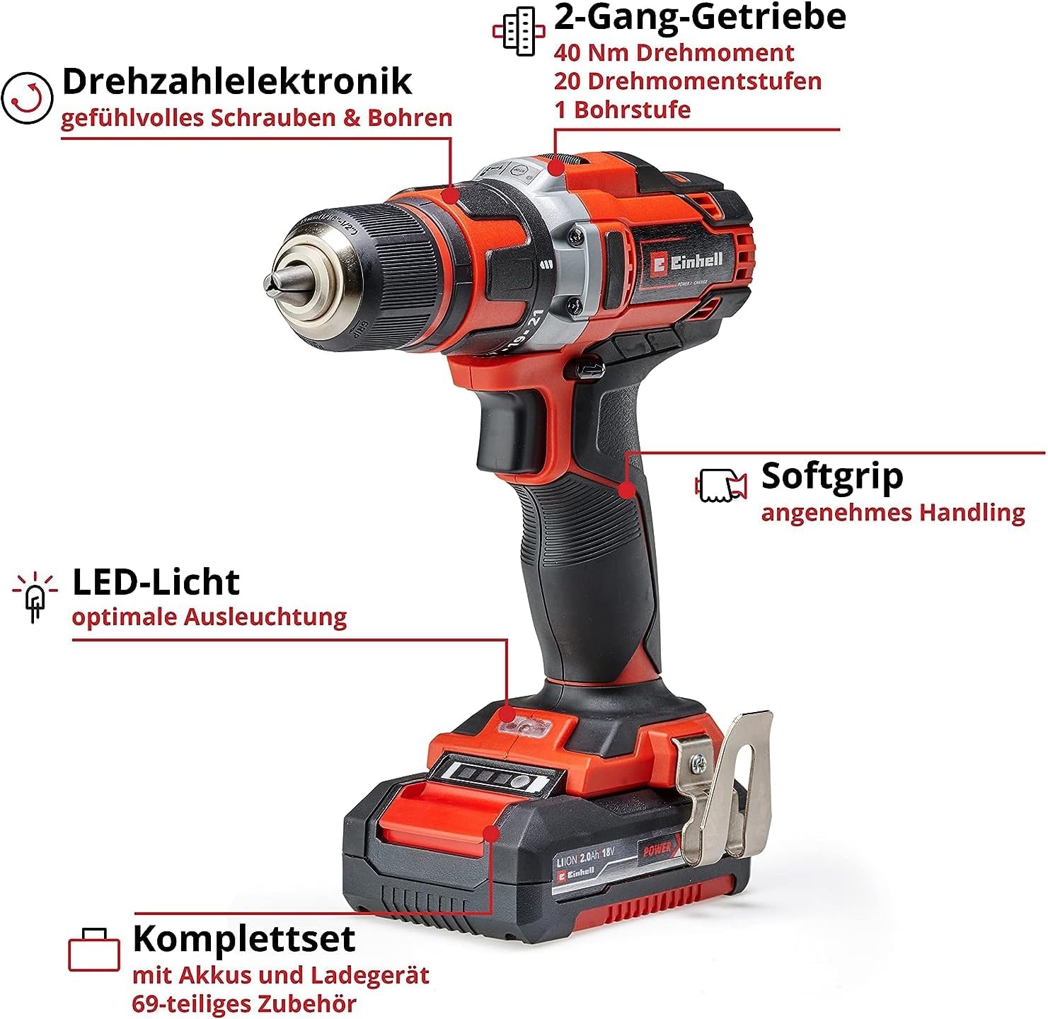 - Das Einhell Akku-Bohrschrauber-Set TE-CD 18/40 Li Kit (2x2,0 Ah) ist ein flexibel einsetzbarer Helfer beim Schrauben und Bohren. Der Akku-Bohrschrauber ist ein kompaktes, kraftvolles und vielseitig einsetzbares Multifunktionsger