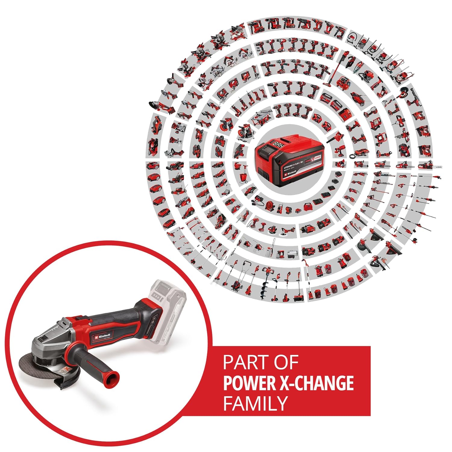 • Power X-Change – Der Einhell Akku-Winkelschleifer TE-AG 18/115 Q Li-Solo ist Teil der Power X-Change Familie, in der Akkus, Ladegeräte und Geräte flexibel kombiniert werden.