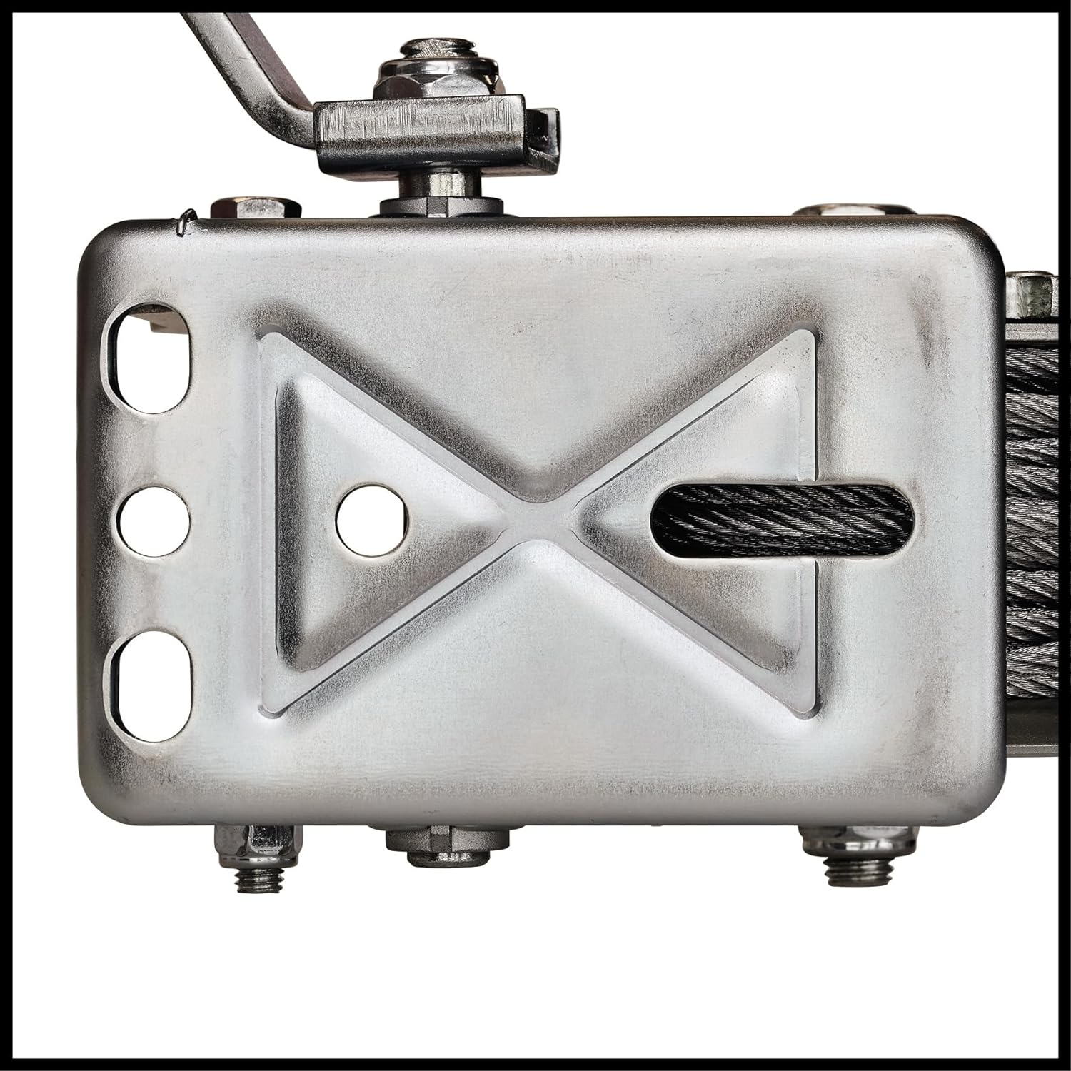 - Die Handseilwinde verfügt über ein 20 Meter langes, drallfreies Drahtseil (Ø 4, 8 mm) mit einem Sicherheitslasthaken und einer Sicherungsklappe. Die Sicherungsklappe verhindert ein ungewolltes Aushängen der Last.