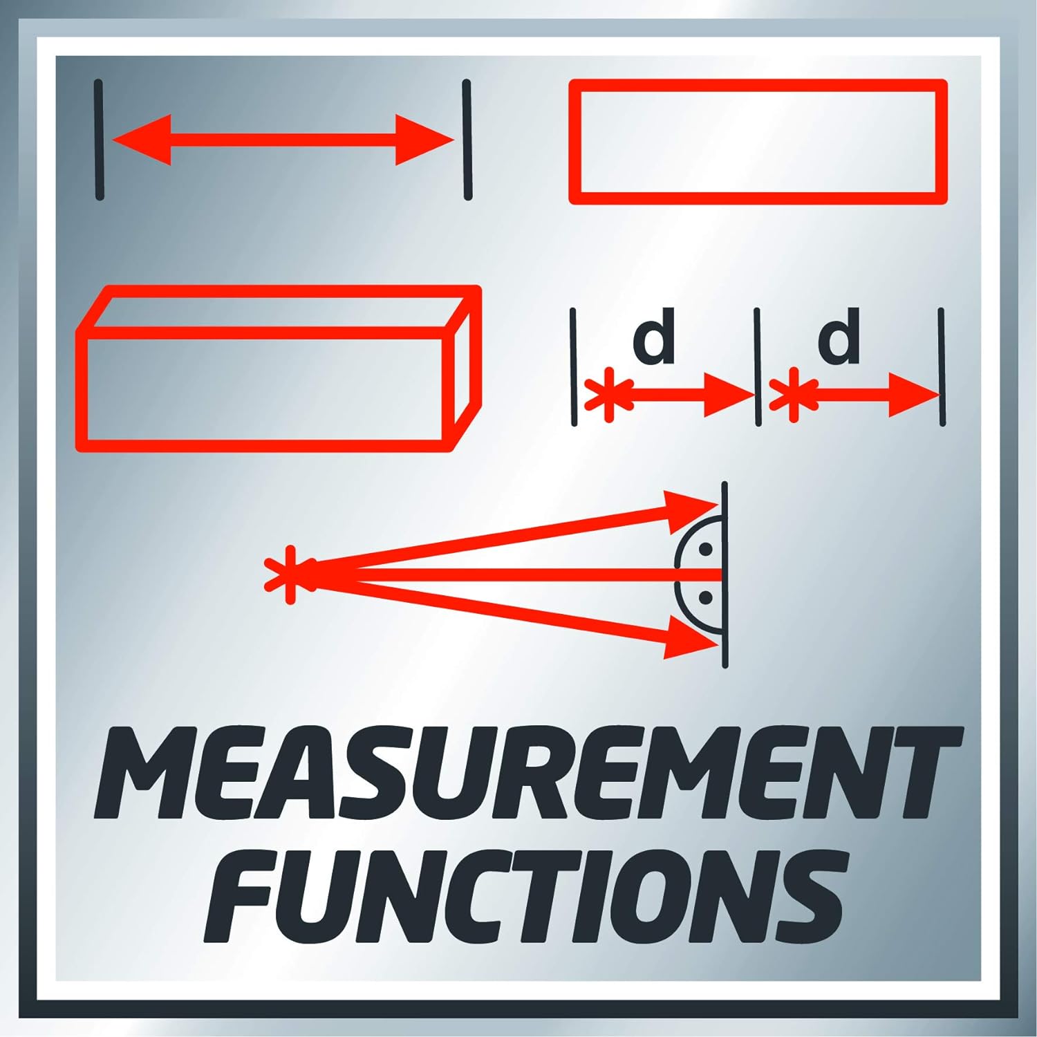 - Der Laser-Distanzmesser erlaubt einfaches und präzises Messen von Flächen und Volumen sowie Strecken mit Abständen bis zu 60 Metern. Das Messen ist ab der Vorder- und Hinterkante oder der Anschlagsplatte des Gerätes möglich.