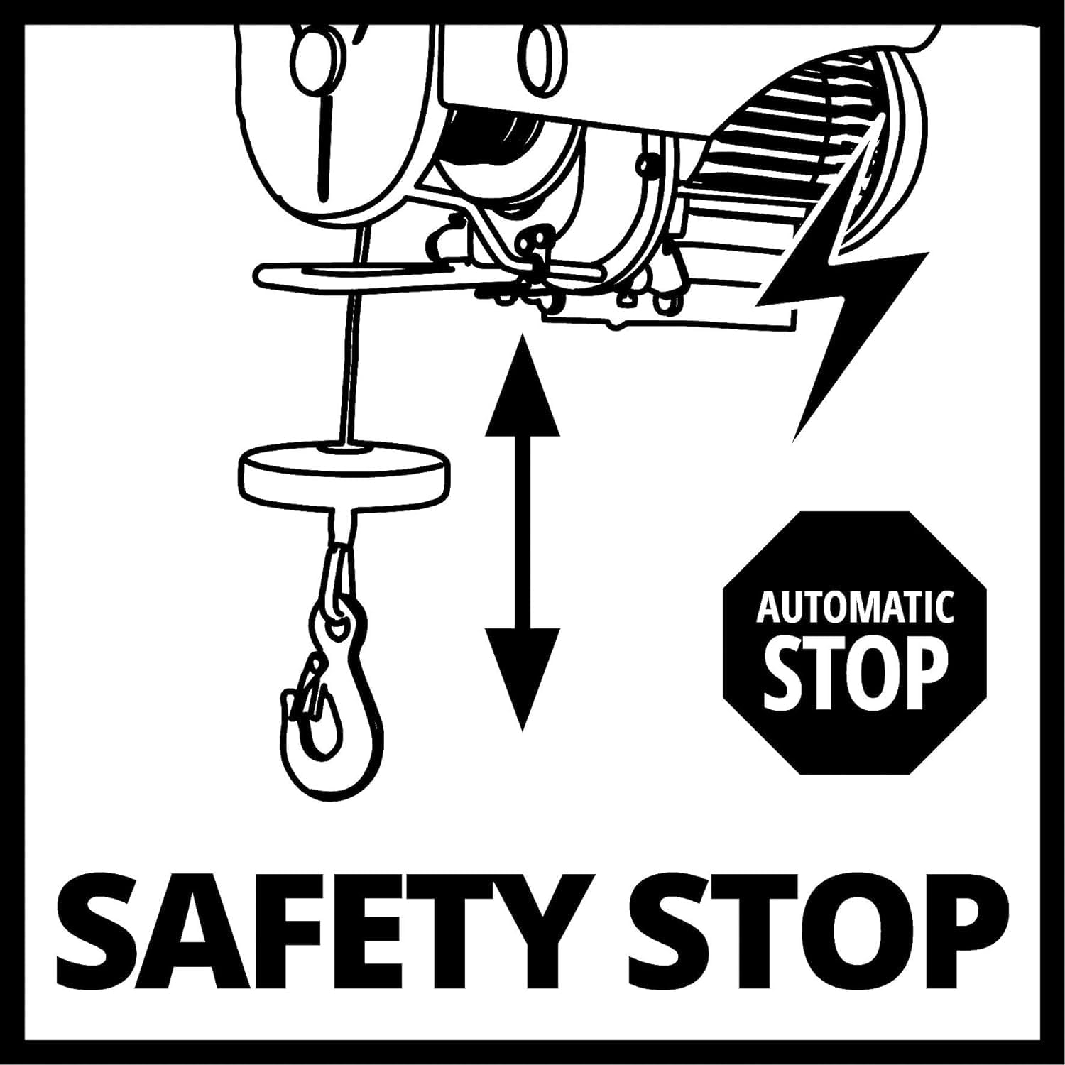 • Sicher durch den Einsatz: Ausgestattet ist der Seilhebezug mit einem Bedienungsschalter mit Not-Aus für ein Plus an Arbeitssicherheit. Eine automatische Bremse sichert die Last in jeder Lage.