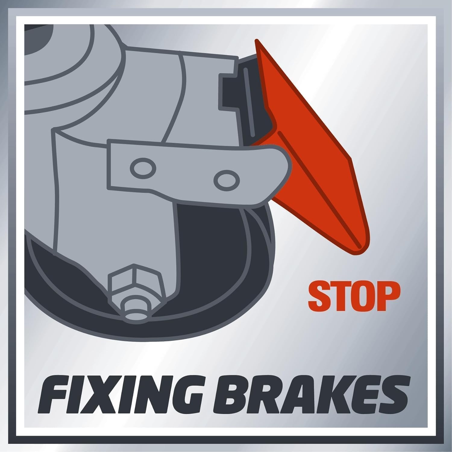 - Genau dort, wo er gebraucht wird: mit vier drehbaren Rollen, zwei Feststellbremsen und einem Schiebegriff.