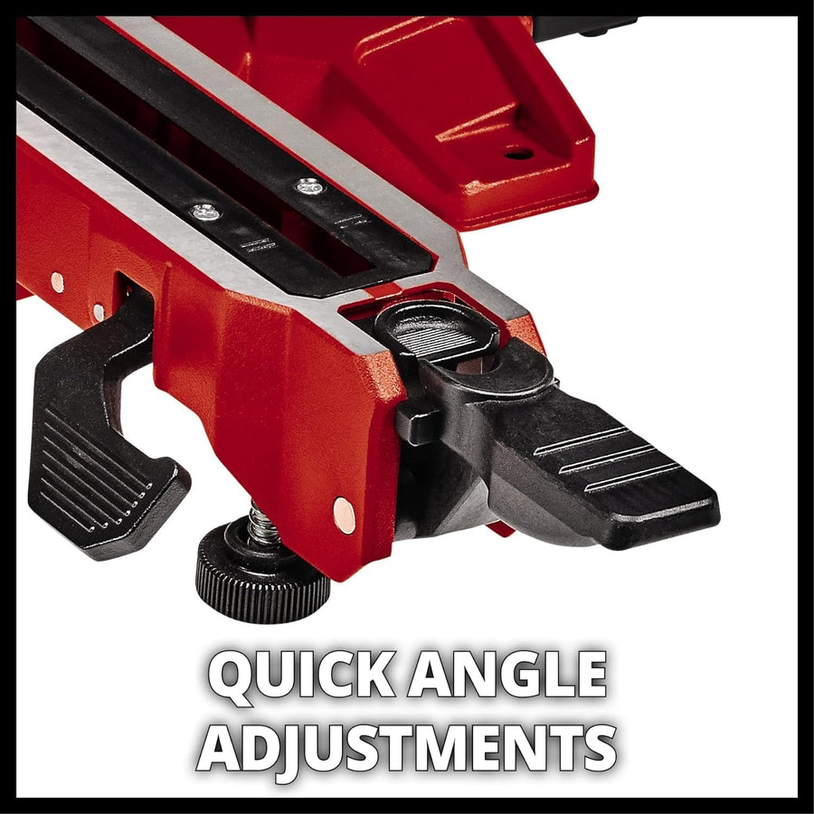 - Gut ablesbare Skalen für Winkel und Breiten und der integrierte Schnittlinienlaser erleichtern die Arbeiten. Die präzise Winkeleinstellung am Drehtisch erleichtert gelungene Schrägschnitte