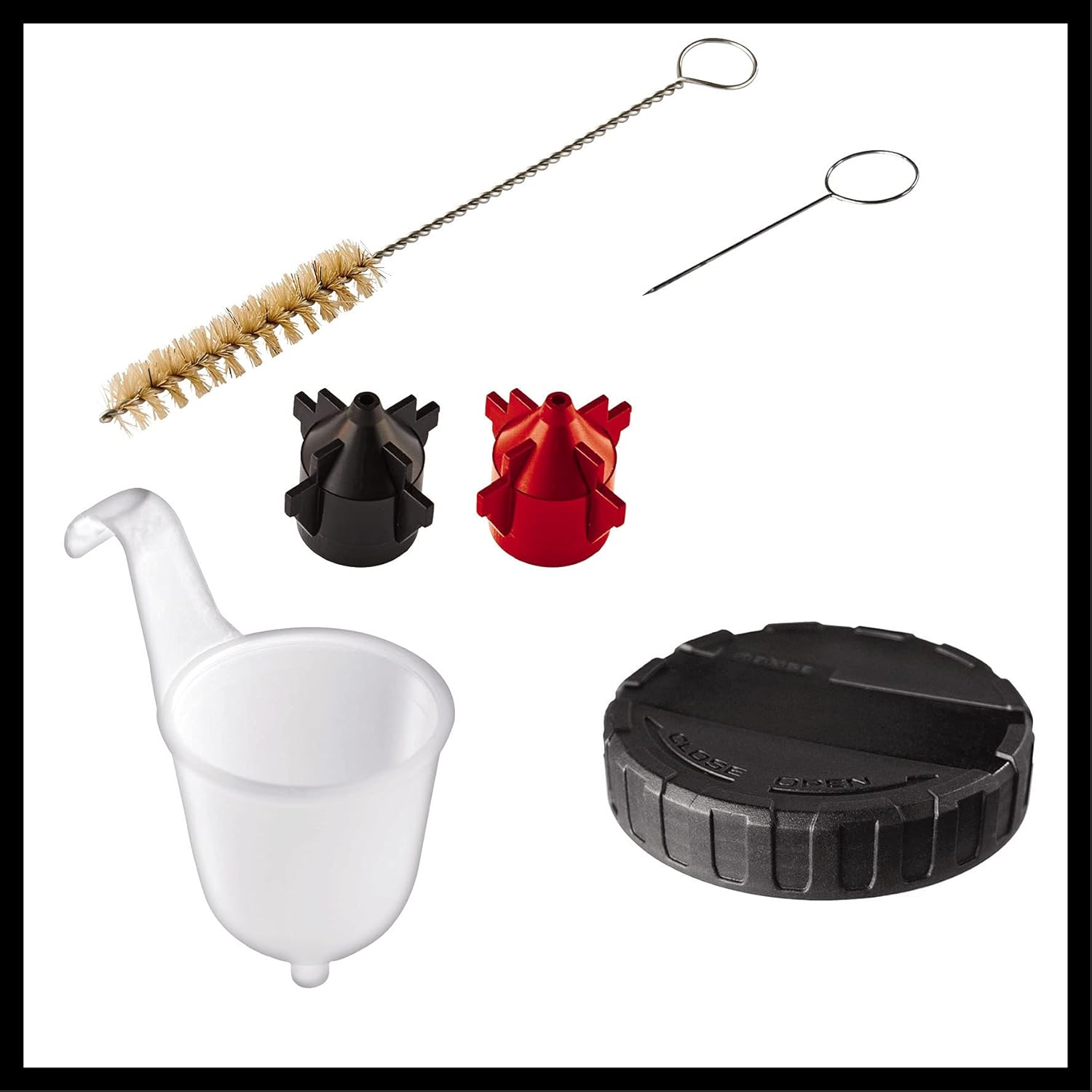 - Inkl. Zubehör - Das Farbsprühsystem wird mit 2 Düsen, einem Behälter zur Viskositätsprüfung, einer Reinigungsbürste und -nadel sowie einem Farbbehälter mit Messskala und Deckel geliefert.