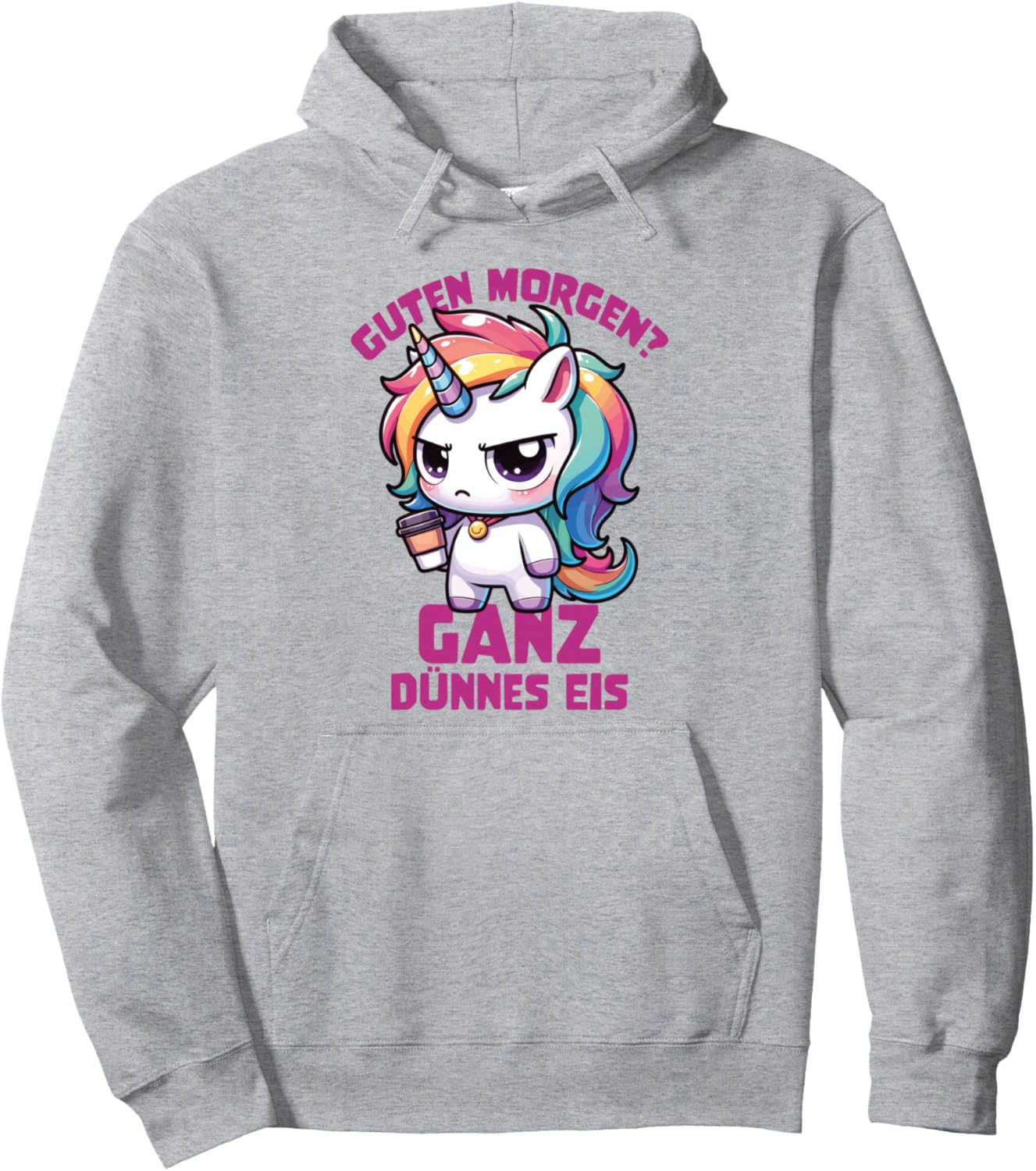PRODUKTBESCHREIBUNGEN Perfekt für Langschläfer: unser 'Guten Morgen, Ganz Dünnes Eis' Einhorn design – ironischer Spass für alle, die morgens ihren Kaffee direkt brauchen! Dieses design mit einem sarkastischen Einhorn ist eine witzige Idee für jeden Morgenmuffel. Sarkastische Sprüche und ein lustiger Look begleiten Ihren Kaffee!