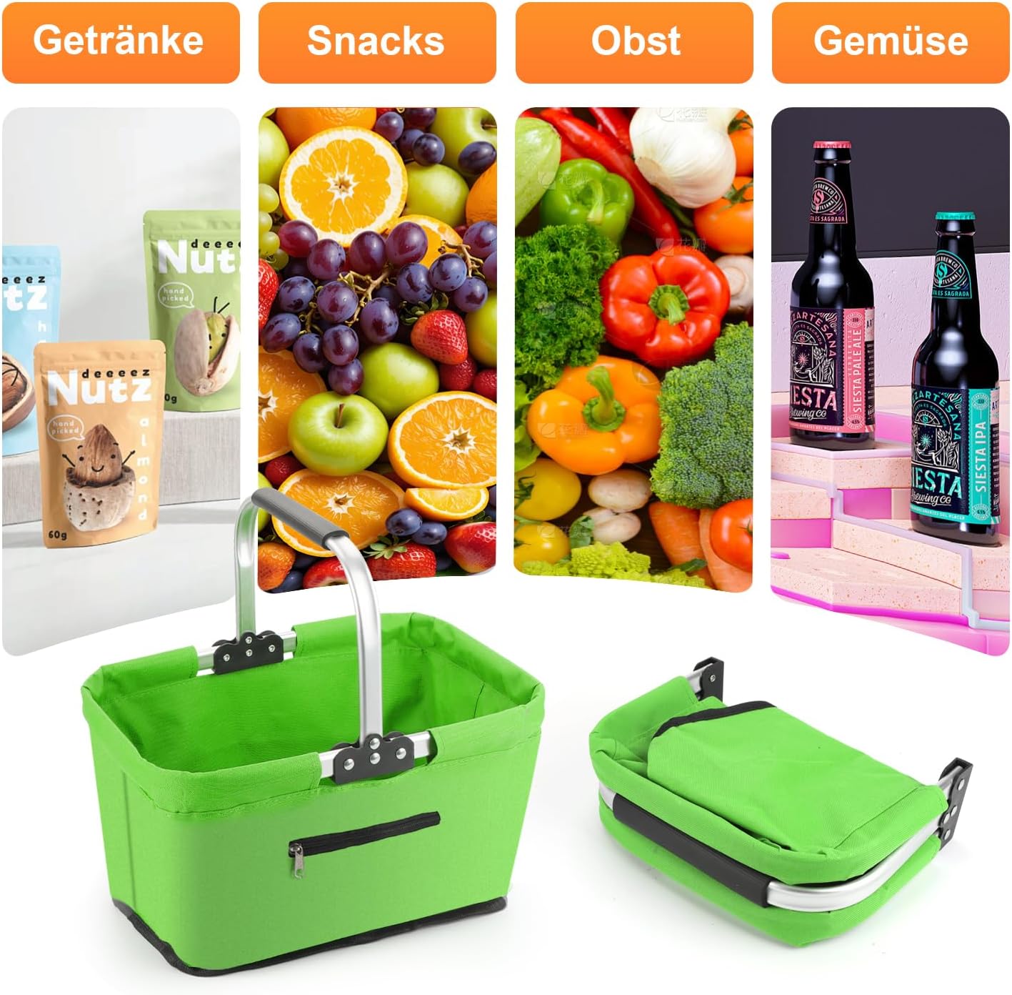 Einkaufskorb Faltbar 25L,Einkaufskorb Klein Mit Gepolsterte Griffe Und ReissVerschlusstasche,Einkauf