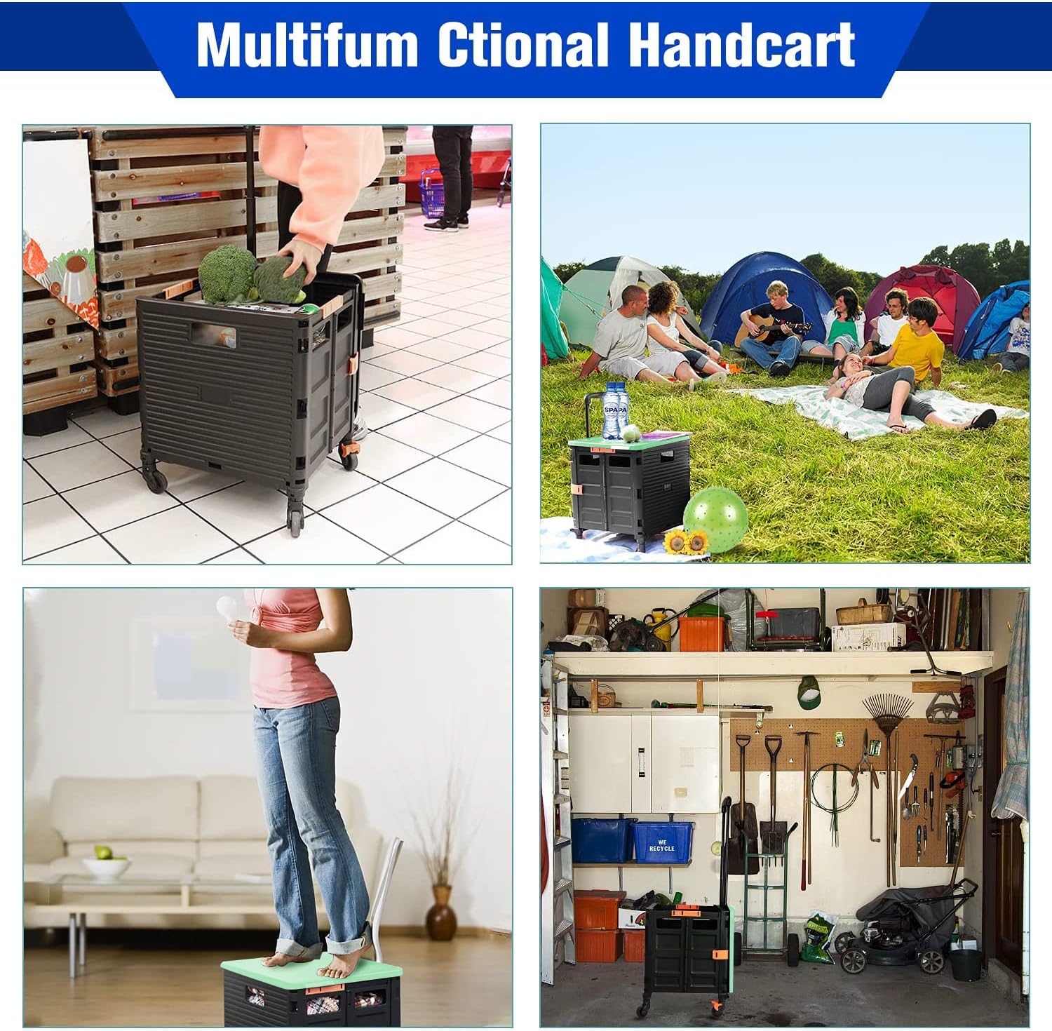- 【Einzigartiges Design mit 4 drehbaren Rädern, praktischer】 Dieser faltbare Mehrzweckwagen ist mit 4 abnehmbaren, um 360 ° drehbaren, geräuschlosen Rädern ausgestattet, die bei der Verwendung einfach die Richtung ändern können, und zwei