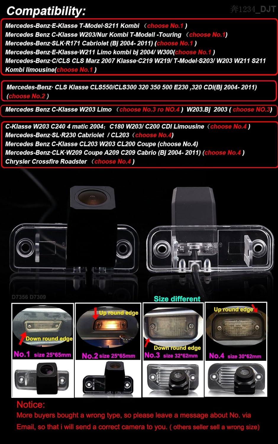 - 📸 1280 * 720 Pixel 1000TV Zeilen. Passt für Mercedes-Benz CLS Klasse CLS550/CLS300/320/350/500/E230/320CDI (Bj 2004-2011) (choose No.2)
