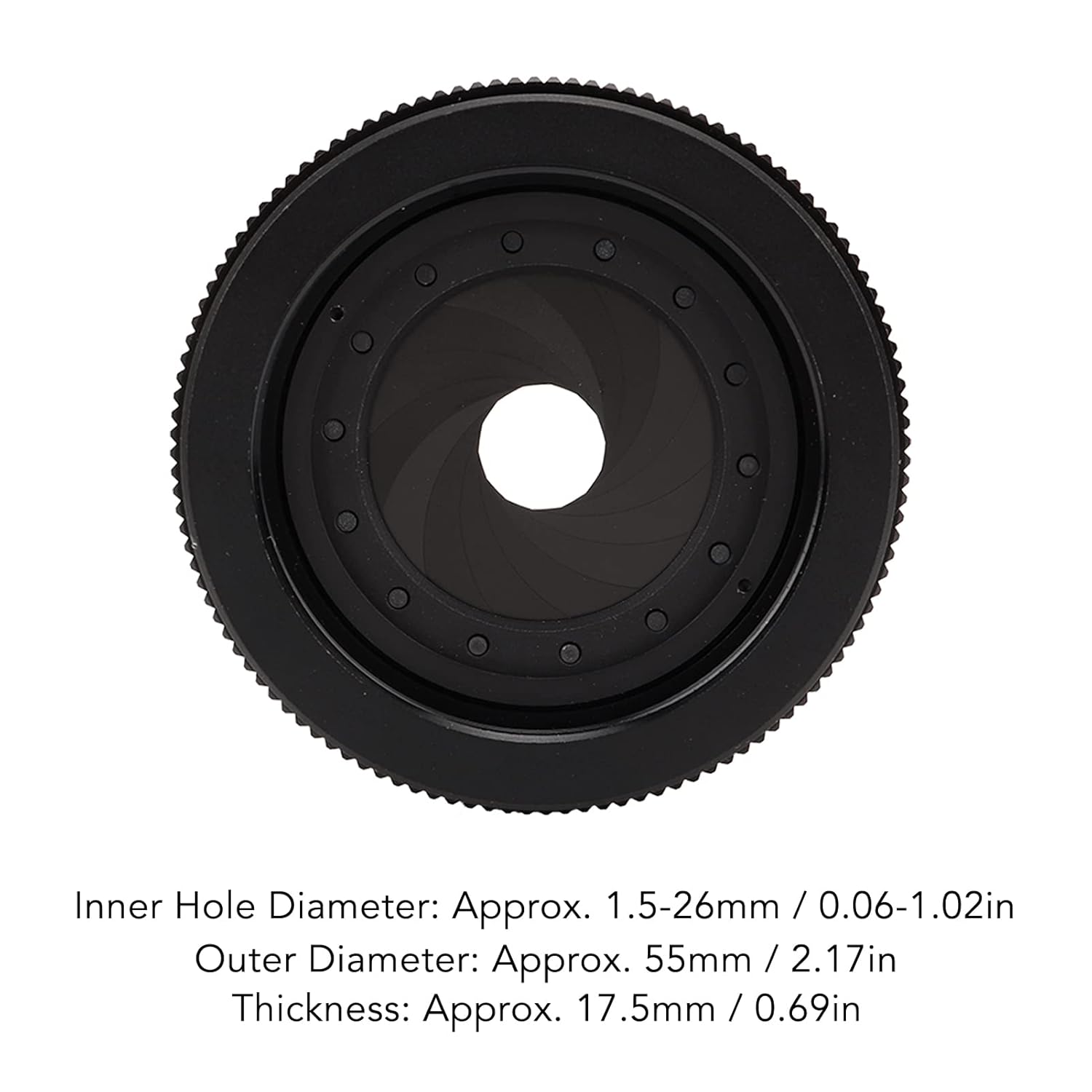 - EINSTELLBARER INNENDURCHMESSER: Aperture Einstellbare Linse Optische Blende, Die Blende ist von 1,5 bis 26 mm einstellbar, mit einem Aussendurchmesser von 45 mm, in einem optischen System, um unterschiedlichen Lichtanforderungen gerecht zu werden.