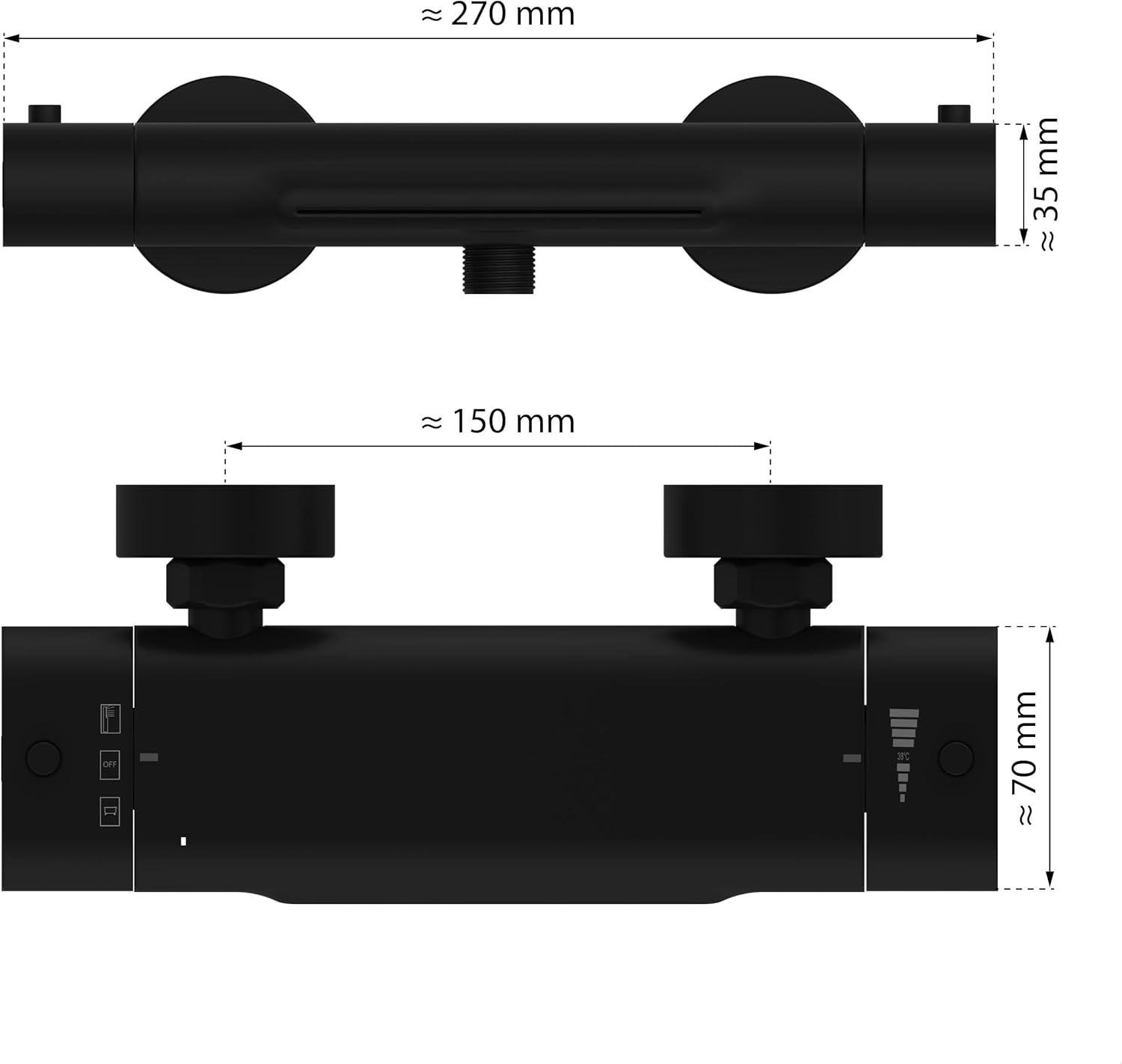 - π οΈππππ πππππ πππ : 1 x Wannenarmatur Schwarz, Masse: 272 x 34 x 72 mm, fΓΌr Standard Brauseschlauch (Γ 1,9 cm), 1 x Montageset inkl. S-Anschluss (45 mm) und Abdeckkappen