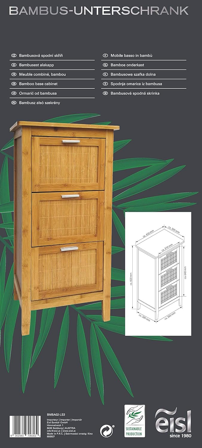 - PFLEGELEICHT: Bambus ist ein sehr pflegeleichtes Material – schnell und einfach mit einem feuchten Tuch abwischen. Gelegentlich ein Spritzer Olivenöl auf das Tuch lässt den Unterschrank fürs Bad immer wieder in neuem Glanz erstrahlen