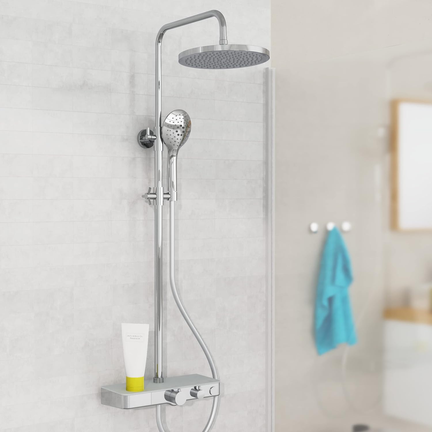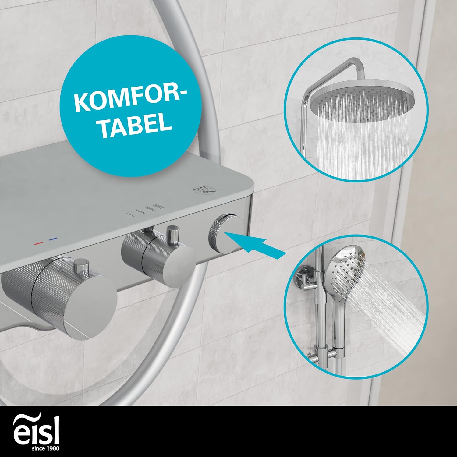 - 🤝𝐏𝐑𝐀𝐊𝐓𝐈𝐒𝐂𝐇: Das Duschbrause Set verfügt über eine Thermostat Ablage, mit der einfach zwischen Kopf- und Handbrause gewechselt werden kann. Ausserdem verfügt das Thermostat über einen Verbrühschutz bei 38 Grad.