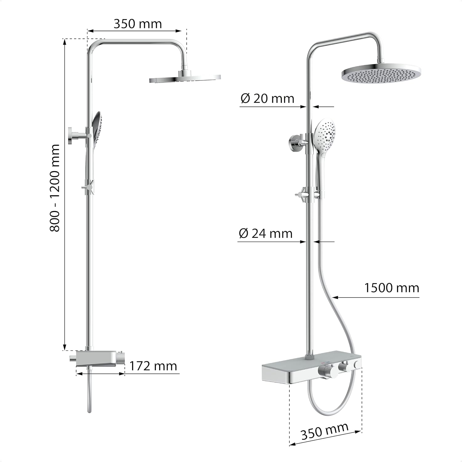 - ✔️𝐋𝐈𝐄𝐅𝐄𝐑𝐔𝐌𝐅𝐀𝐍𝐆: 1x Thermostat Duscharmatur, 1x Regendusche Kopfbrause, 1x Duschsäule, 1x Wandhalterung, 1x 3-fach verstellbare Handbrause inkl. Halter, Brause-Schlauch (150 cm) 2x S-Anschlusstücke,