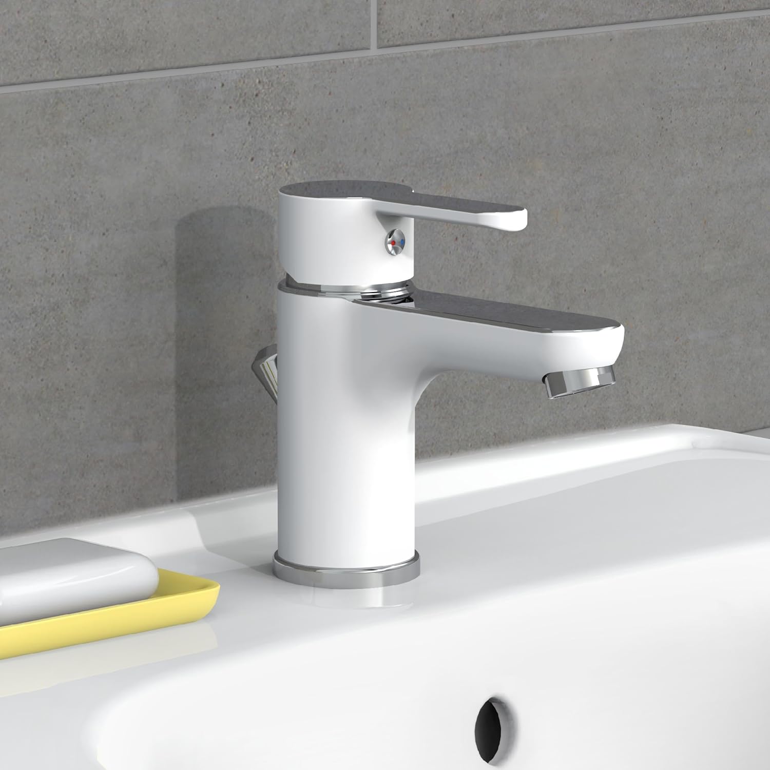 EISL Waschtischarmatur DIZIANI, Wasserhahn Bad in Weiss/Chrom, Einhebelmischer mit Ablaufgarnitur, M