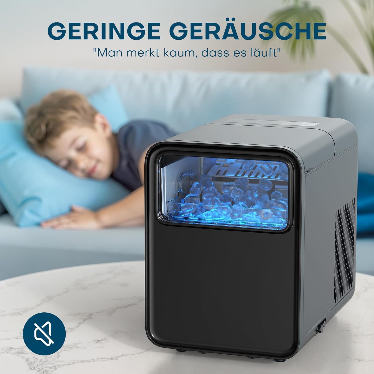 - Effiziente Eisherstellung & Visualisierung: In nur 6-8 Minuten erhalten Sie 9-kugelförmige Eiswürfel, sodass Sie und Ihre Familie schnell frische Eiswürfel geniessen können. Die Wassertank-Kapazität deseiswürfelmaschine ist 1.5L, und es kann bis zu