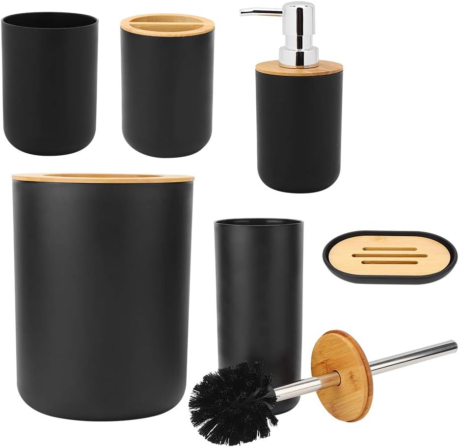 - 【Hochwertige Materialien】Das Badezimmer-Set besteht aus hochwertigem PP und Bambus, das langlebiger ist als ähnliche Produkte. Da es langlebig ist, ist es nicht so leicht zu brechen wie der Keramikanzug