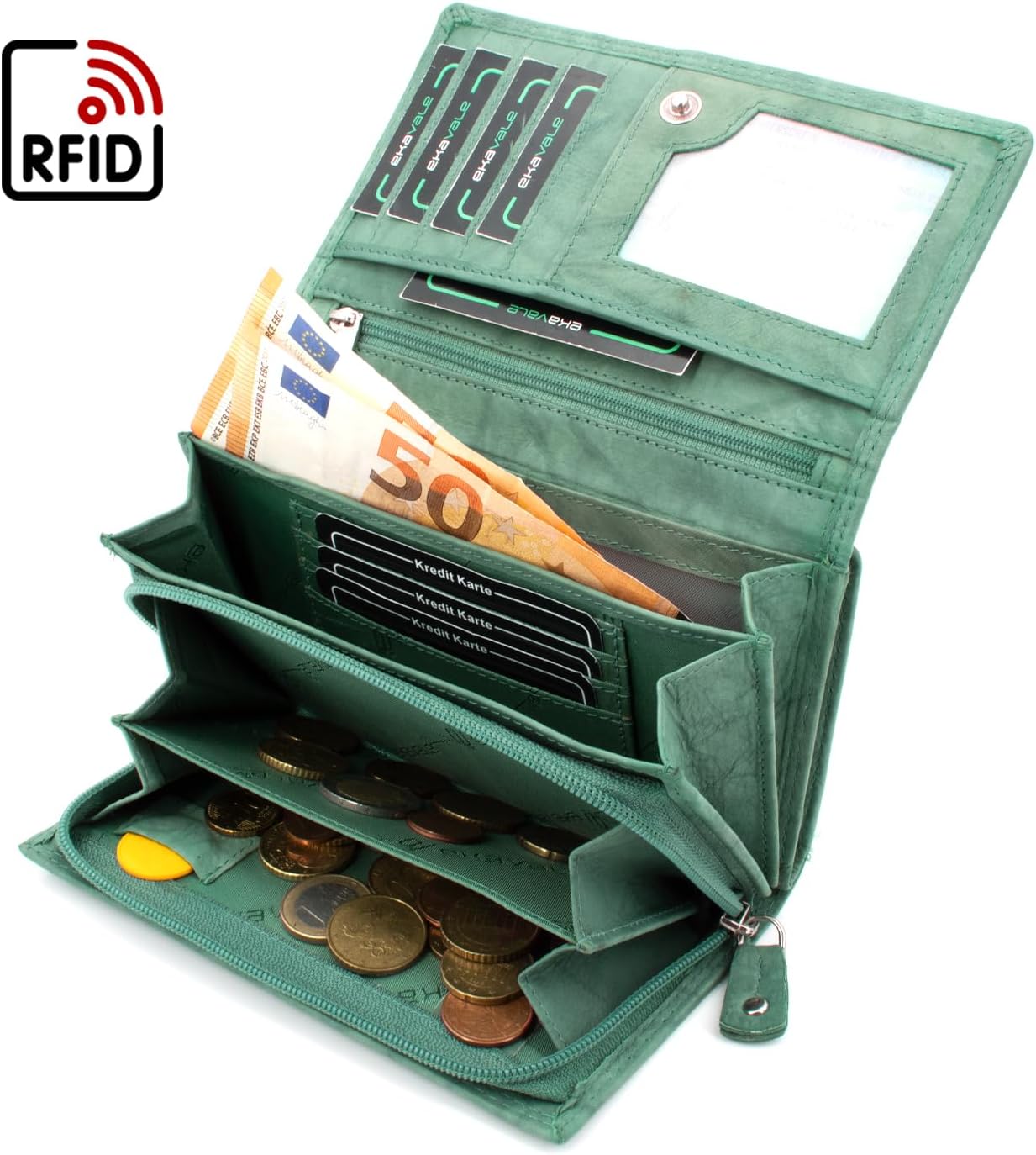 - ✅ EDLES DESIGN: Die Damen-Geldbörse unterstreicht Ihre Persönlichkeit und ist mit ihrem zeitlosen Design ein absoluter Hingucker in jeder Situation. Mit unserer Geldbörse für die Frau sind Sie immer perfekt organisiert und sorgen für einen