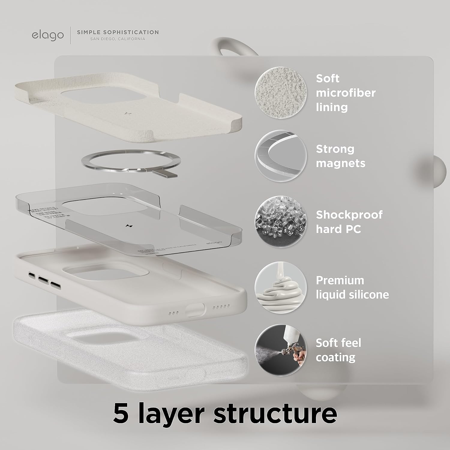 elago Magnetische Silikonhülle Kompatibel mit iPhone 15 Pro Hülle, Kompatibel mit MagSafe Alles Zube