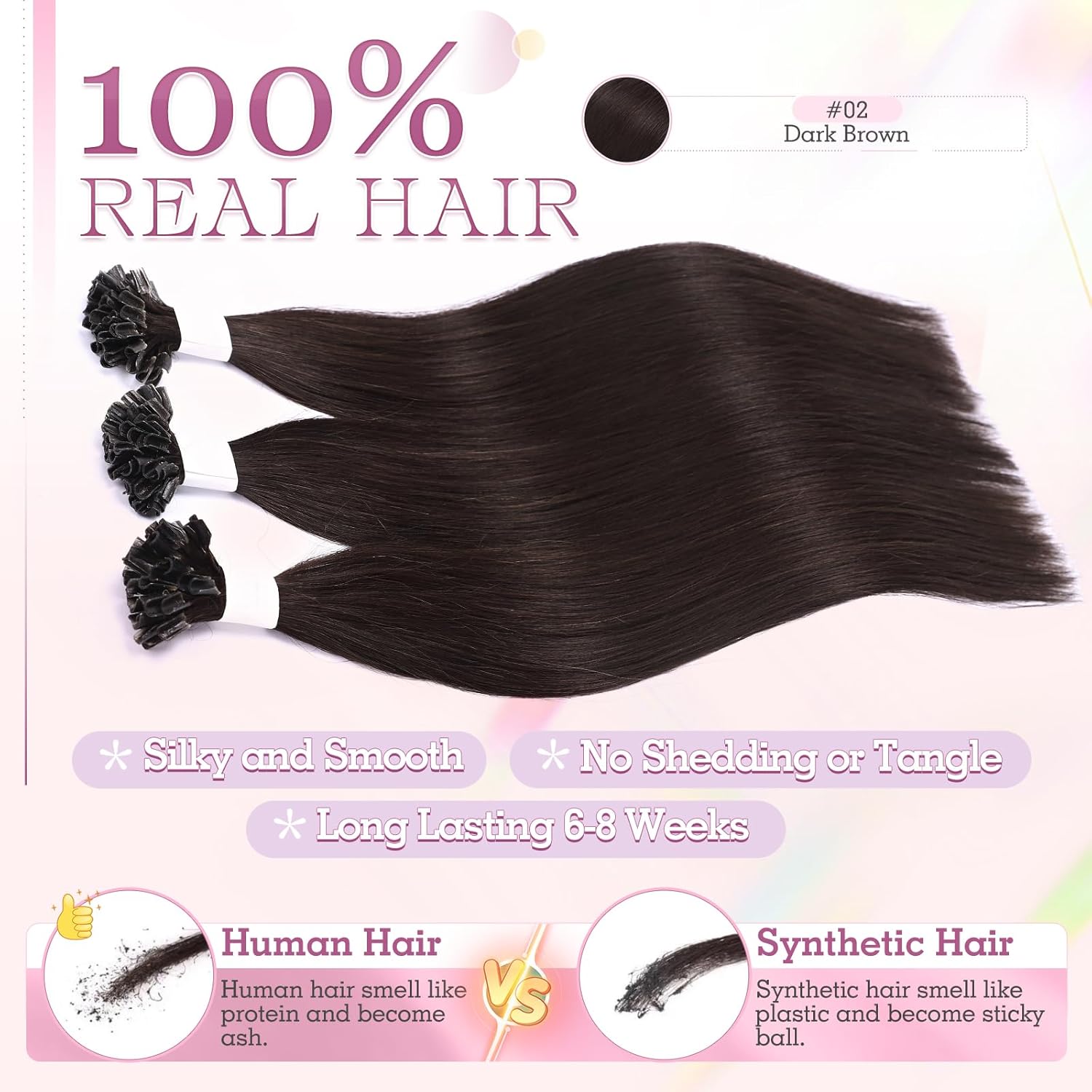 • 【Keine Beschädigung】U-tip-extensions beschädigen ihr haar nur, wenn sie schlecht angepasst oder schlecht gepflegt werden. Lassen sie ihre extensions also von einem qualifizierten extensions-spezialisten anbringen.