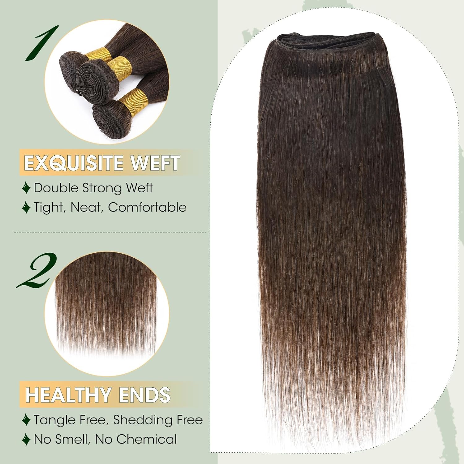 Elailite Bündel Extensions Echthaar #2 Dunkelbraun 25cm Sew in Haar Haarverlängerungen Weft Brasilia
