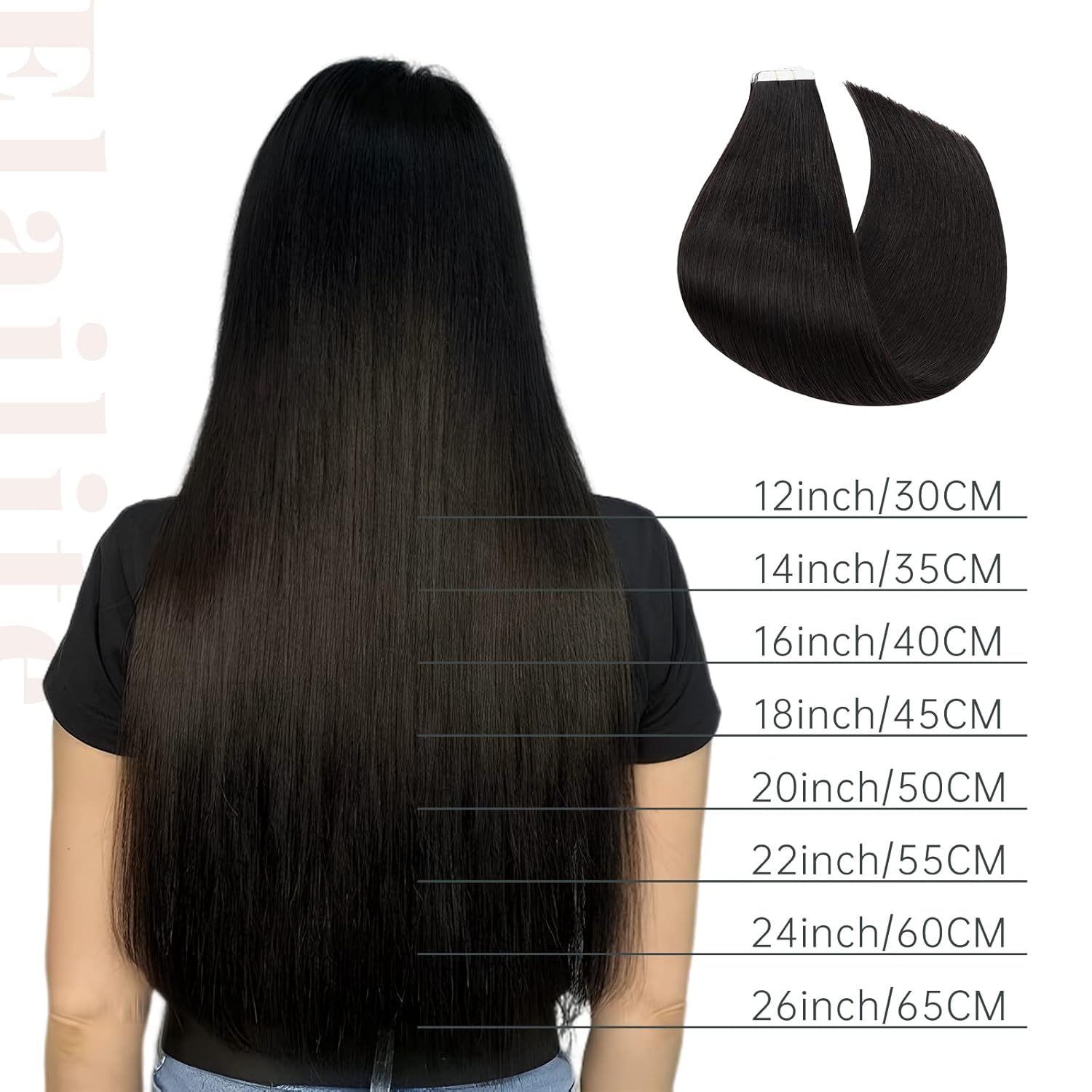 Elailite Echthaar Extensions Tape in 20 Stück #1B Naturschwarz, Real Human Hair 20g/set, 30cm Haarve