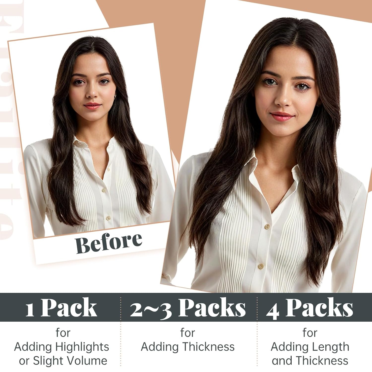 - 【Unsichtbarere Haarverlängerung】: Wenn Sie die unsichtbarste und natürlichste Haarverlängerung erzielen möchten, dann muss unsere Pinselkleber-Verlängerung Ihre beste Wahl sein. Wir empfehlen 75-100 g für das Volumen und 100-150 g für die