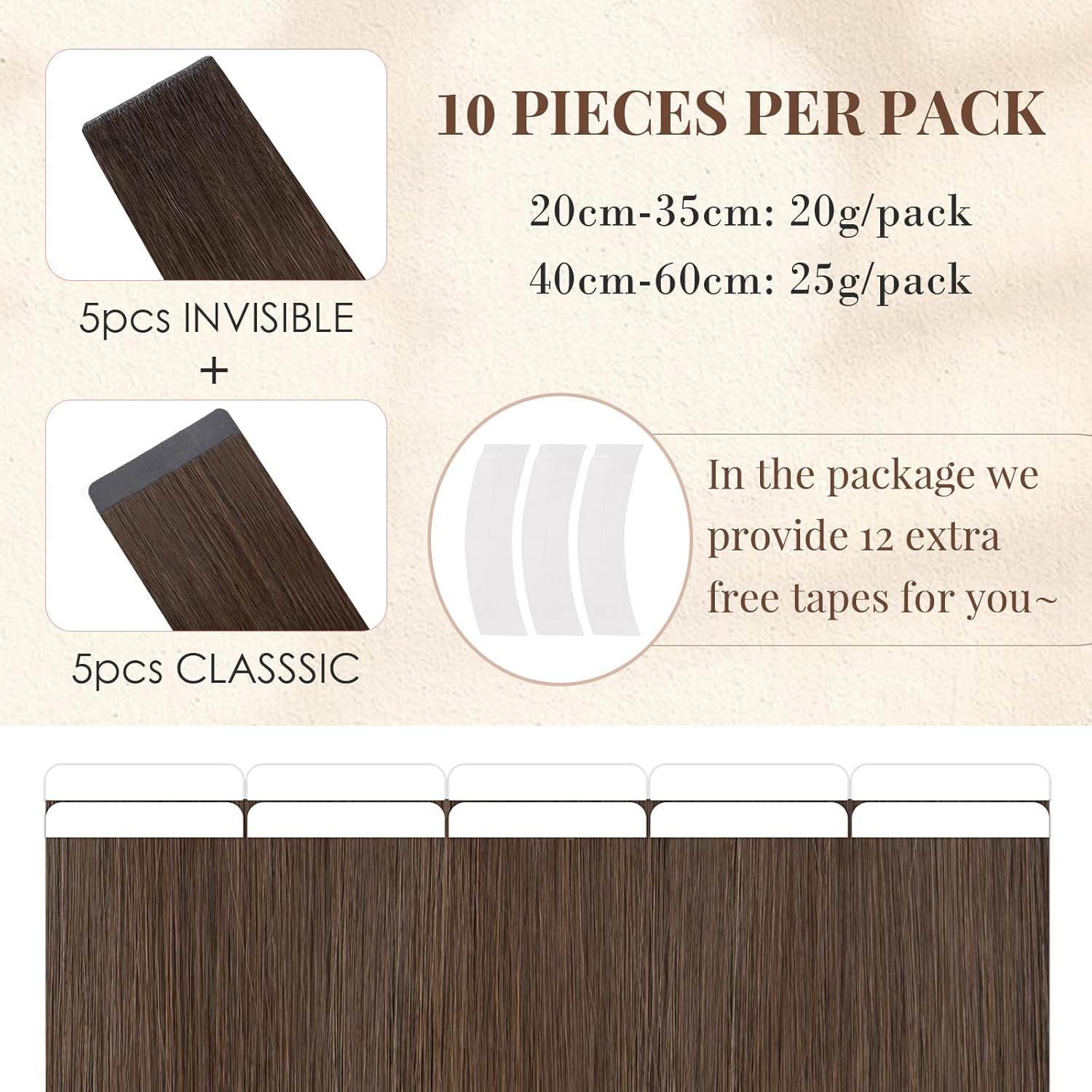 - [Paket] - 5 Stk. selbstklebende Haarverlängerungen + 5 Stk. eingenähte Haarverlängerungen + 12 Ersatzaufkleber. Wir empfehlen, jedes "Sandwich" zu tragen, indem man ein Klebeband unten und ein eingenähtes Band oben nimmt. Der Effekt ist daher super