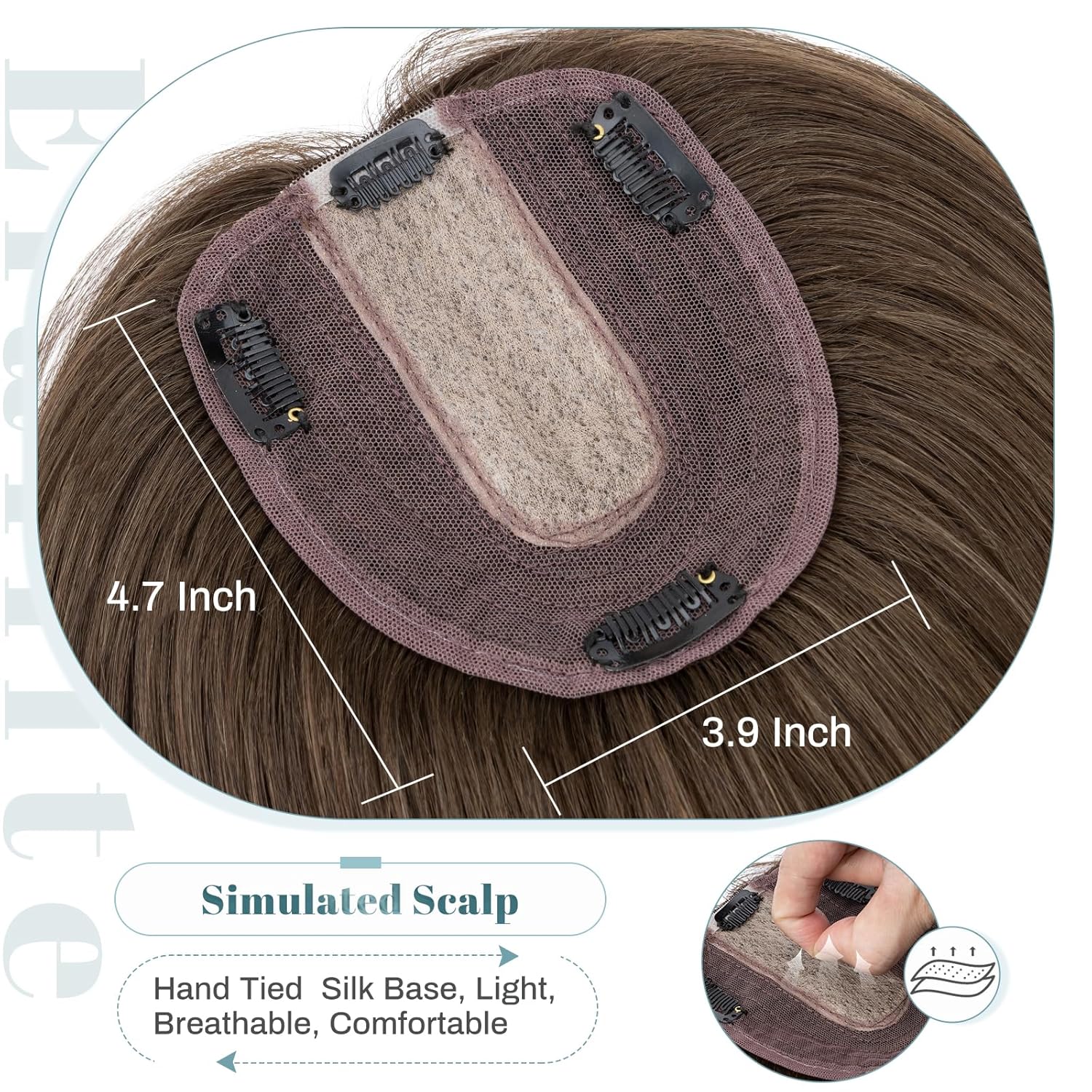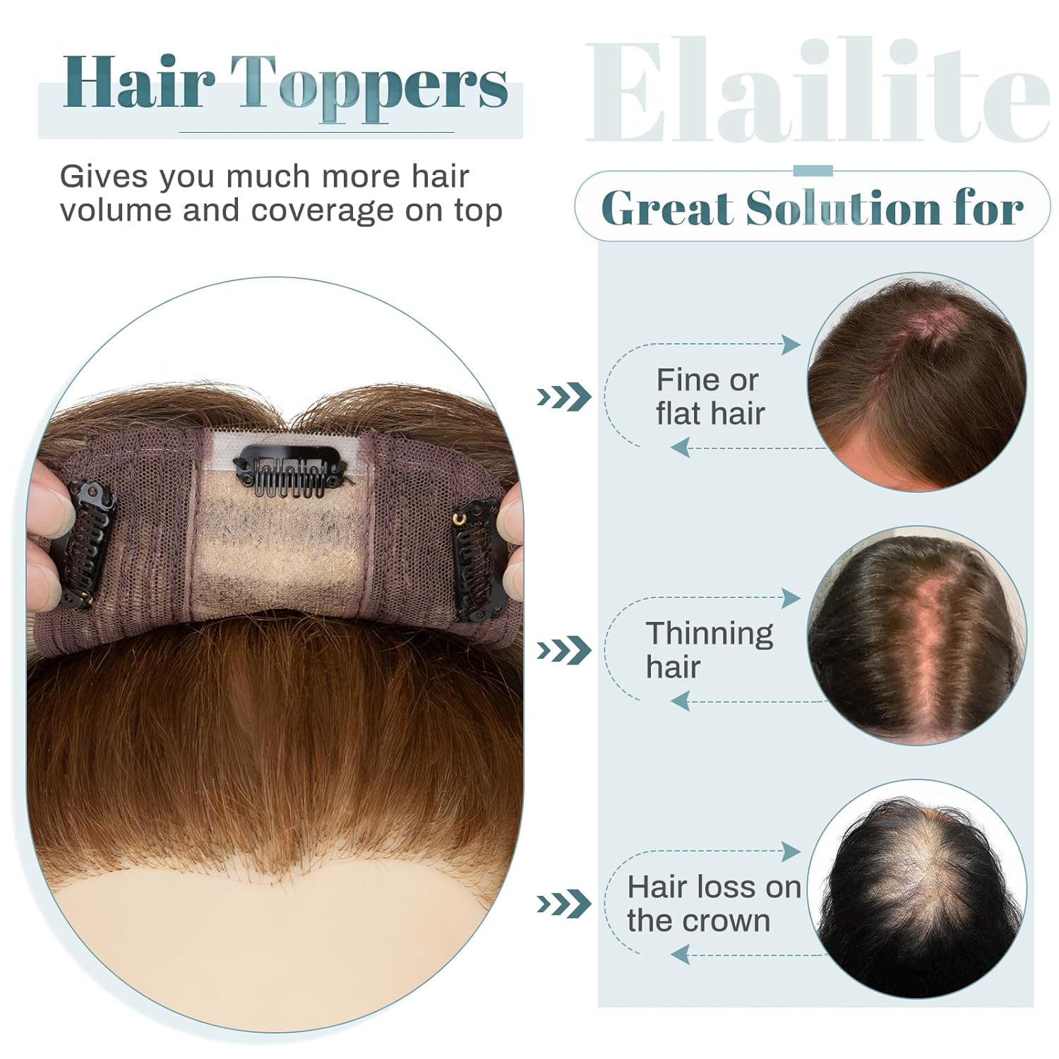 Elailite Topper Echthaar Damen, Topper Clip in Toupet Frauen, Seide Basis 130% Dichte Remy Silk Base