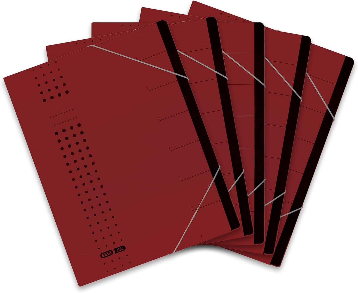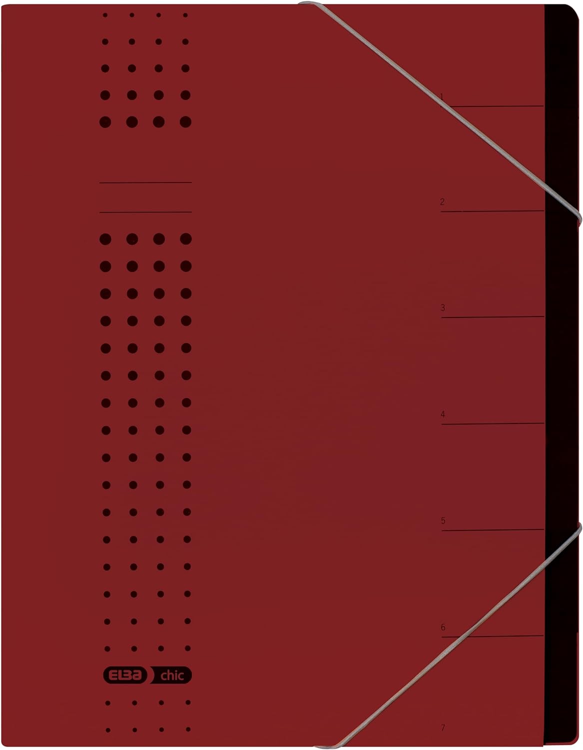 Elba Ordnungsmappe chic A4 aus Karton, 7 Fächer, bordeaux, 5 Stück, bordeaux
