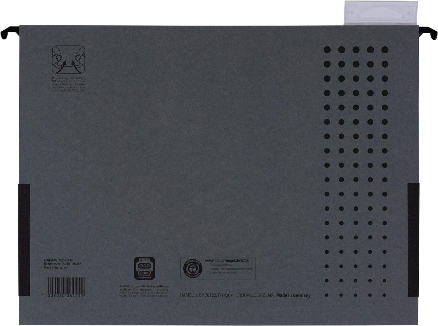 - Anthrazit farbene ELBA chic ULTIMATE Hängetasche für alle DIN A4-Formate zur Ablage von ungelochtem Schriftgut