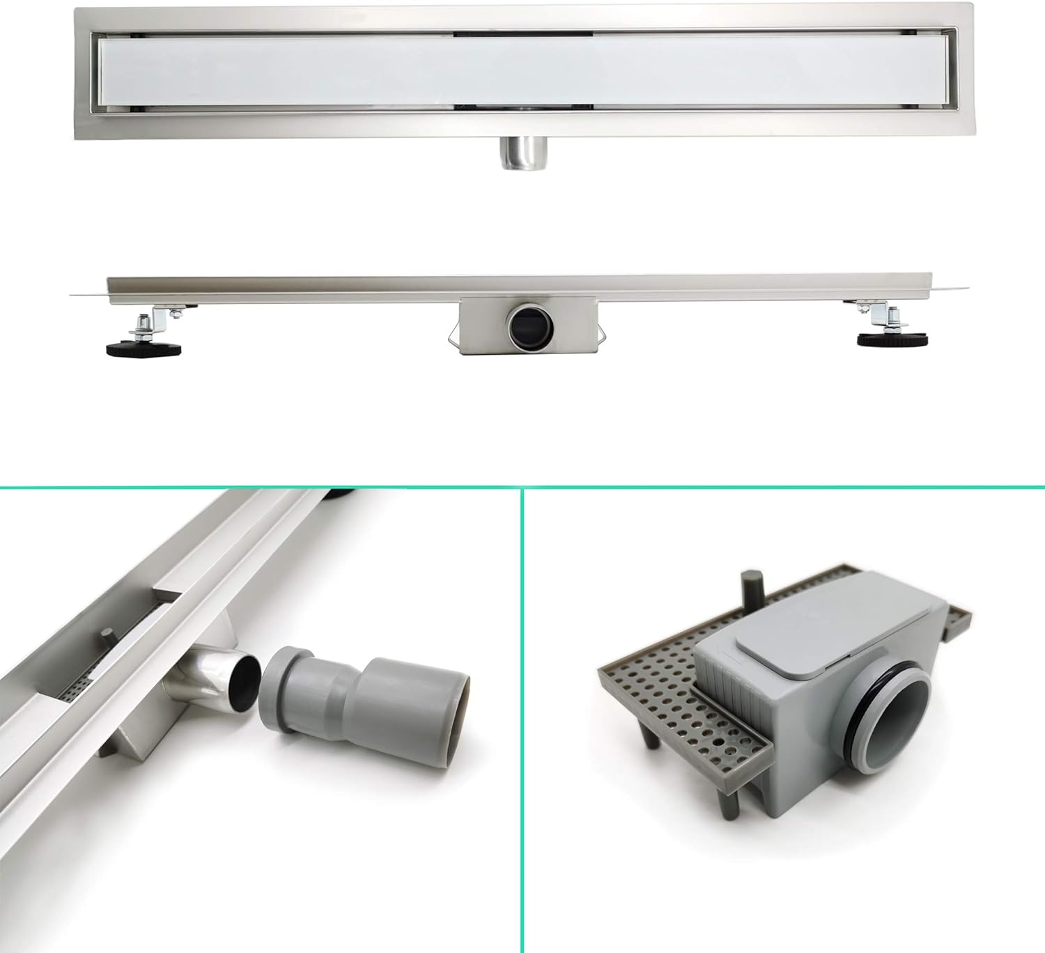 - 【Verhindert Verstopfungen und Gerüche】: Die Edelstahl-Duschrinne mit ihrem dichtmaschigen Flusensieb filtert Haare und Staub effektiv und verhindert Verstopfungen. Ein eingebauter Siphon verhindert das Zurückfliessen von Abwasser und unangenehme