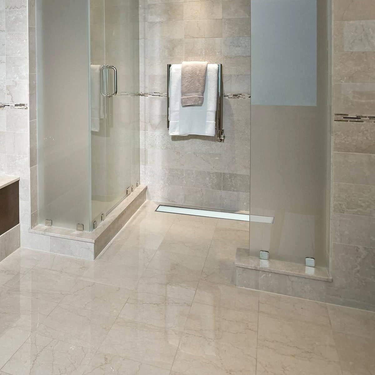- 【Hervorragende Verarbeitung】: Die Duschrinne ist mit Rostschutzfarbe beschichtet und besitzt folglich eine gute Korrosionsbeständigkeit. Die Platte ist aus Glas und es besteht keine Gefahr von Kratzern. Wir legen Wert auf eine gute Verarbeitung der