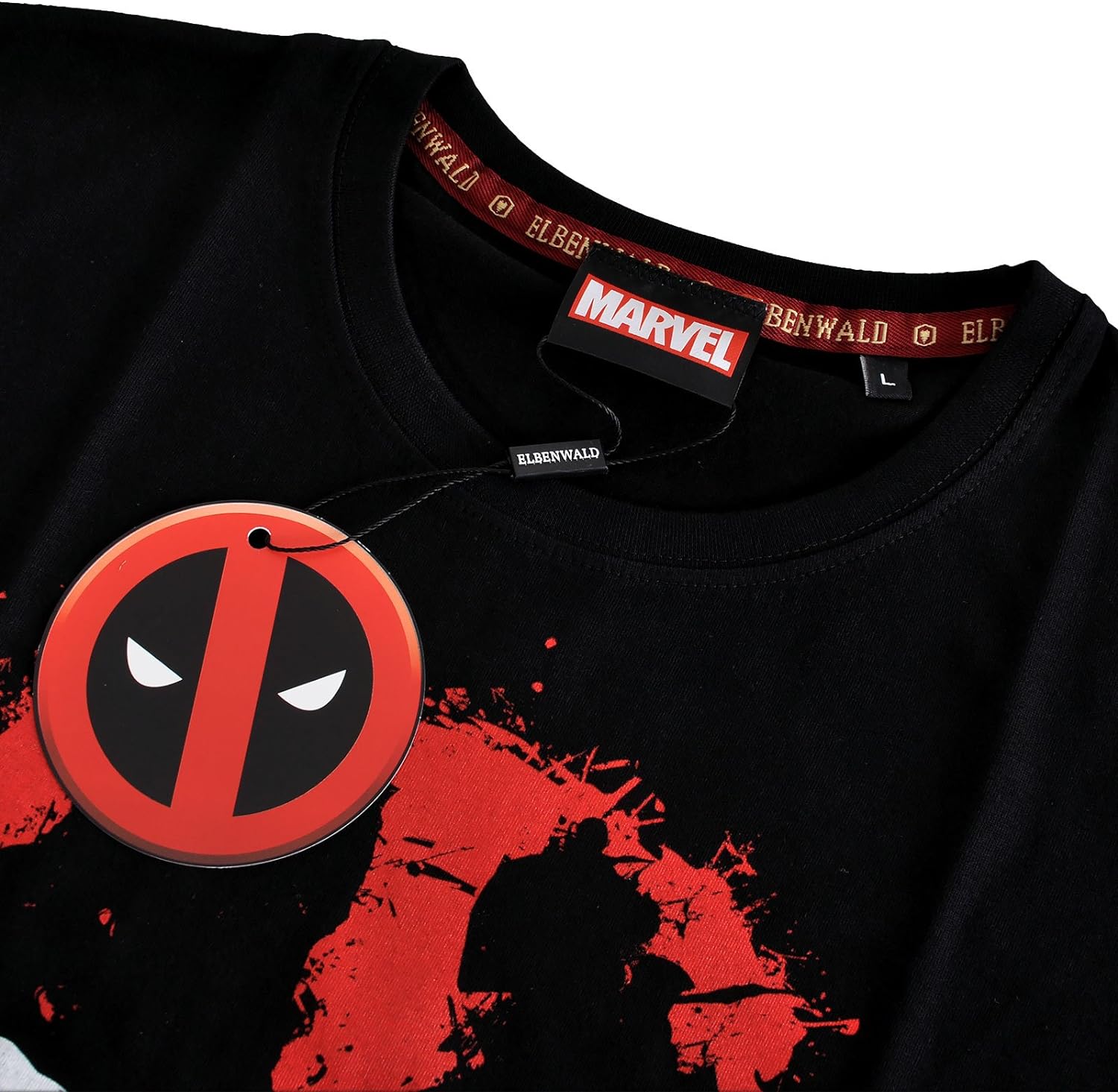 Elbenwald Marvel T-Shirt Deadpool Splatter Symbol Brustprint für Herren schwarz - XL