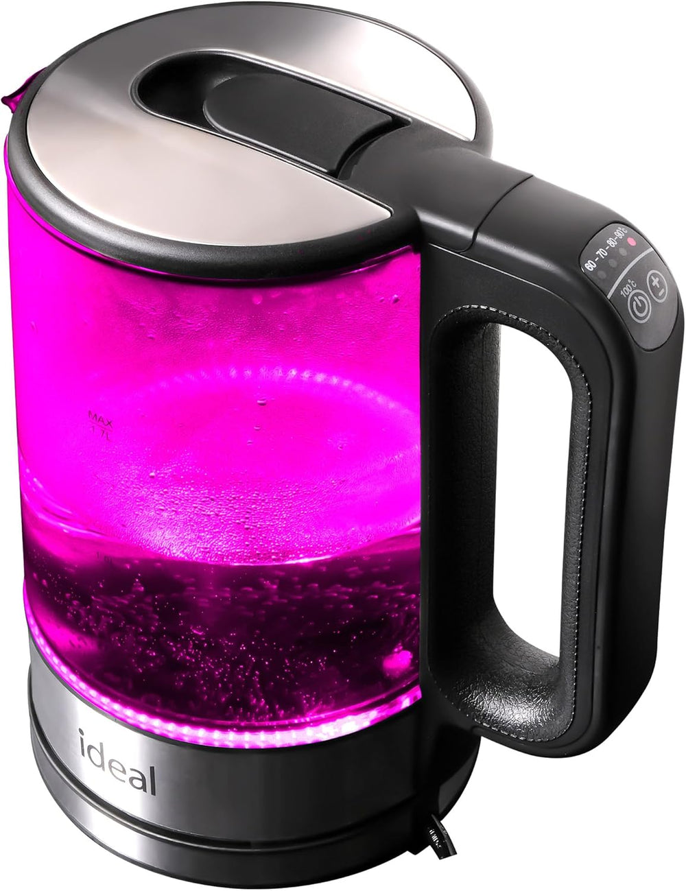- WEITERE EIGENSCHAFTEN - Kapazität: 1,7 Liter, Leistung: 2200W, 360°-Pirouettenbasis, Obermaterial: Glas, leuchtende Betriebsanzeige, farbige LED Beleuchtung (jede Temperatur andere Farbe), ideal für Baby und Kindernahrung, modernes Design