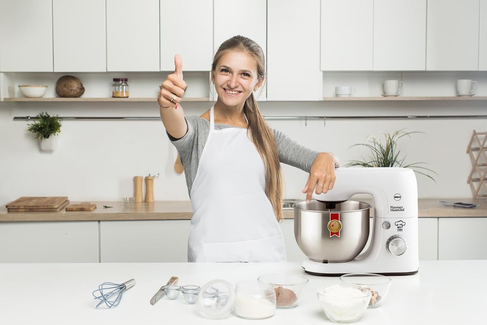 - Das Set beinhaltet: drei verschiedene Spitzen: Rühren, Kneten und Schlagen, Spachtel, transparenter Deckel.