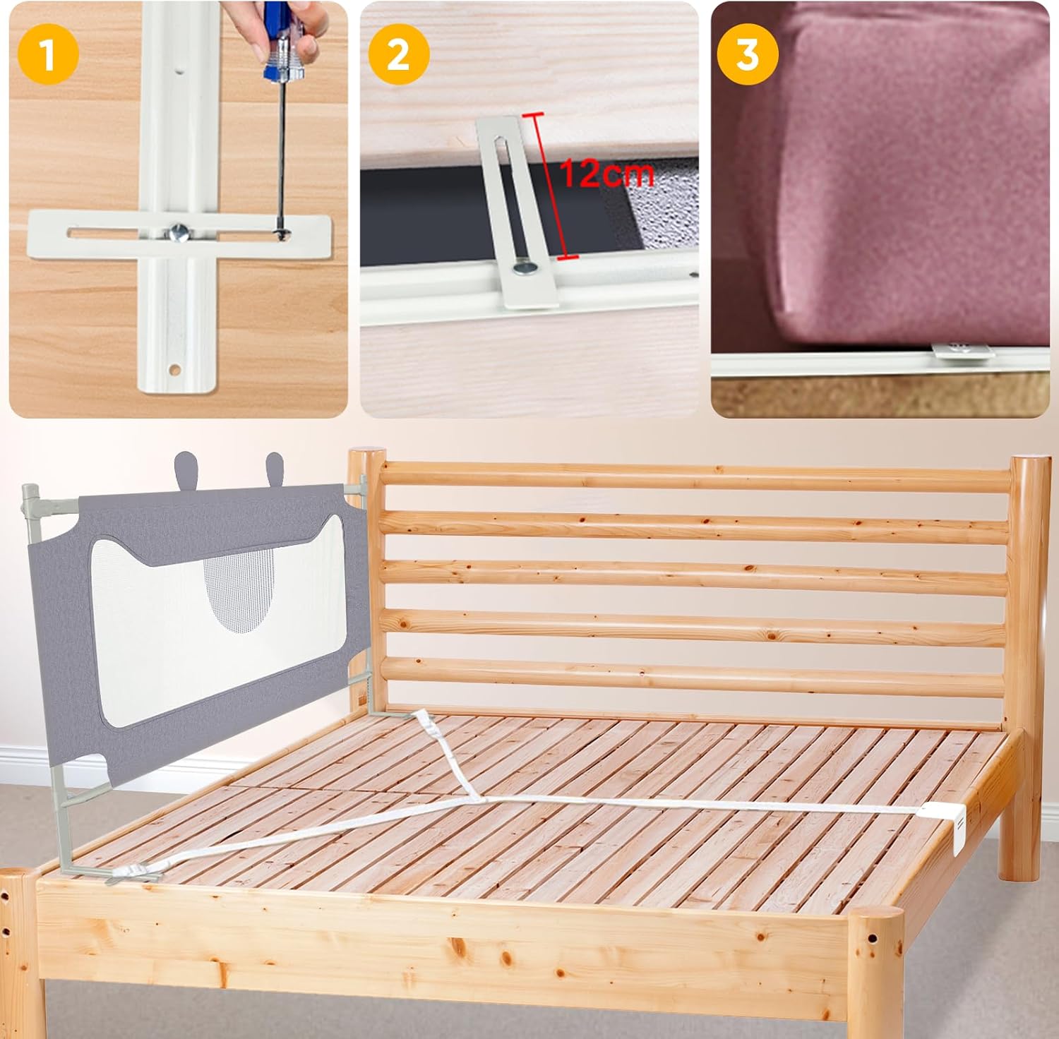 - MÜHELOSE INSTALLATION FÜR SOFORTIGE SICHERHEIT - Unser Kinderbettschutzgitter roch nicht streng und ist einfach im zusammenbau. Dank der mitgelieferte Anteilung können Sie es schnell und einfach an Ihrem Bett befestigen, um Ihrem Kind sofortigen