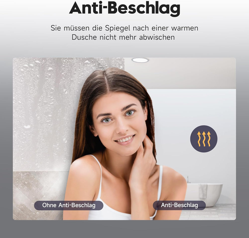 - LED-Beleuchtung Vorteile: schöne, energiesparende, langlebige, effiziente Lichtquelle. Unsere Badezimmerspiegel Beleuchtung sind mit modernster LED-Lichtleiste ausgestattet, so dass sie extrem langlebig und nahezu wartungsfrei sind.