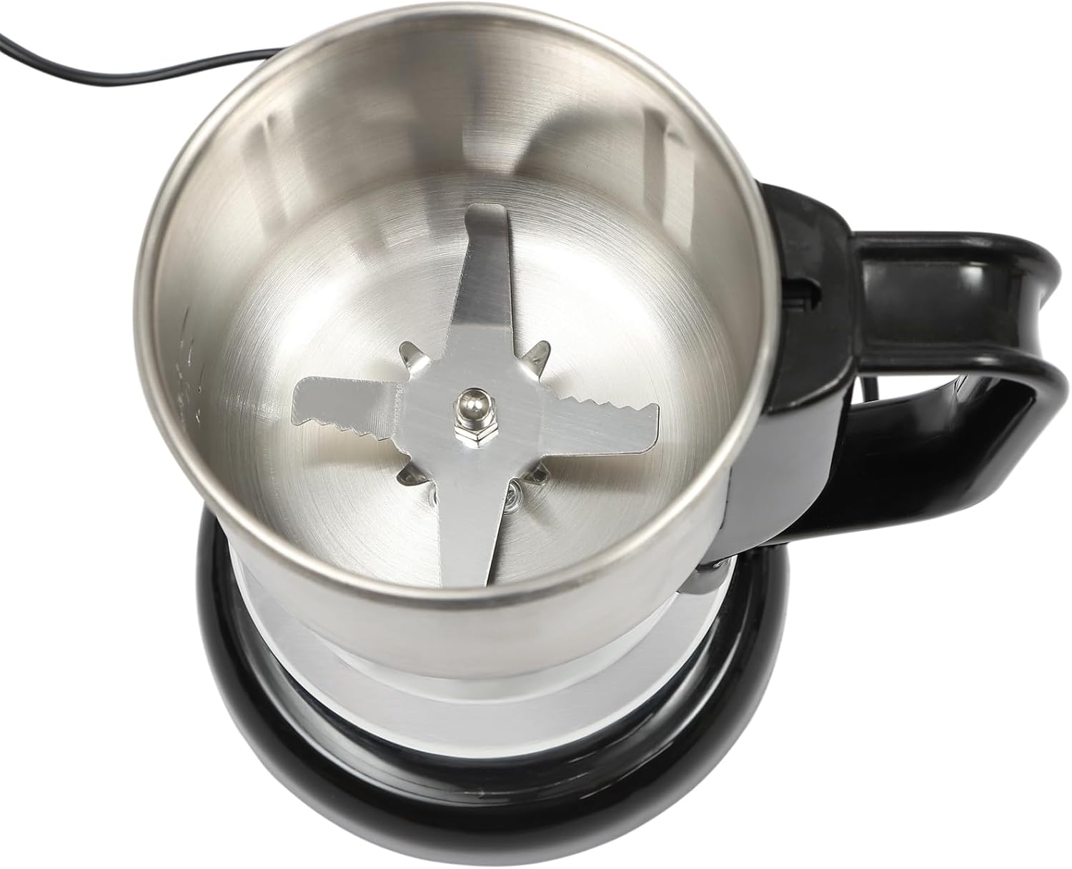 - ☕[Einfach zu bedienen] One-Touch-Design, so dass Sie die Ein/Aus-Taste drücken, um das Mahlen zu starten und die Taste loslassen, um sofort zu stoppen. Der in sich geschlossene Löffel und die Bürste erleichtern das Abmessen und Ausgiessen des Pulvers