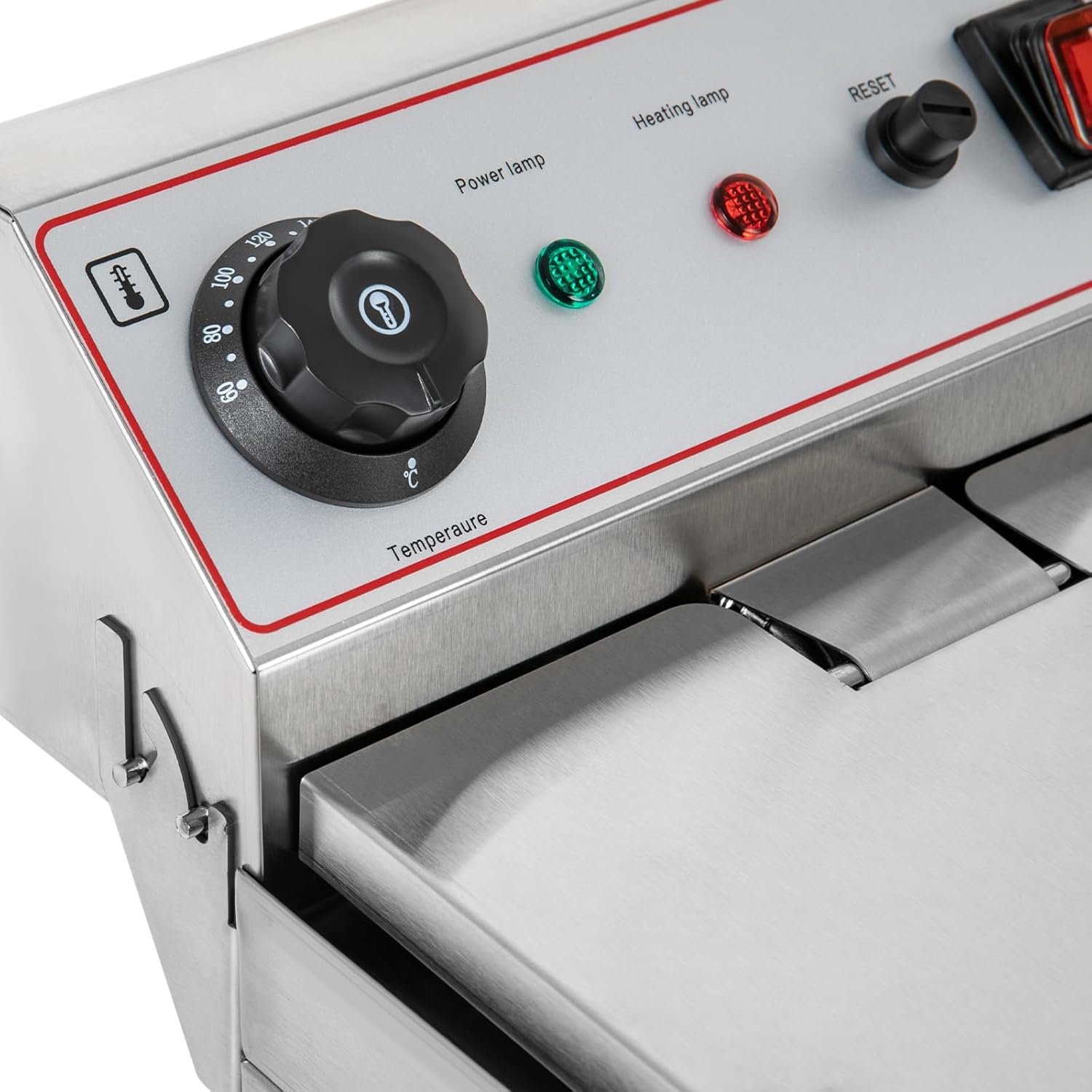- Durchdachtes Design: Es hat eine stufenlose Temperatureinstellung (140-392 ℉), so dass Sie die optimale Temperatur je nach dem, was Sie kochen, einstellen können. Der automatische Thermostat gleicht die Öltemperatur effektiv aus und sorgt dafür,