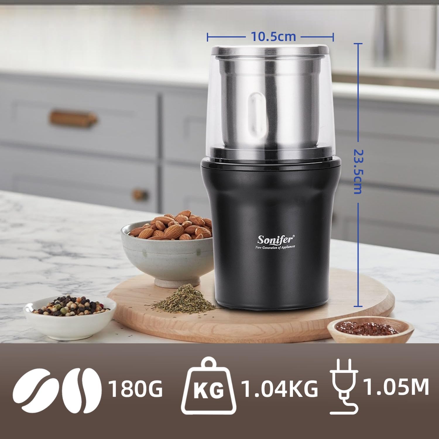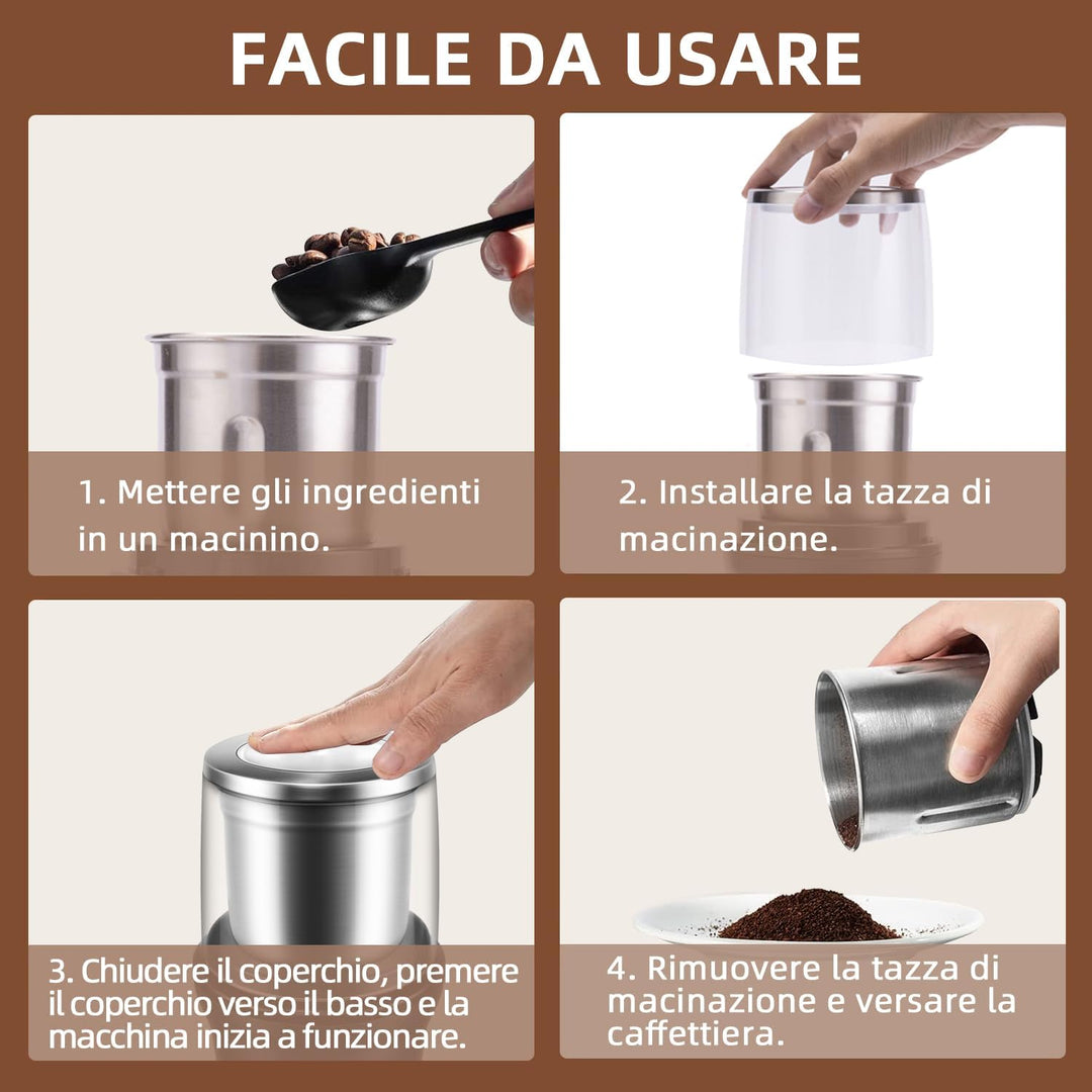- ☕【Grosse Kapazität und leistungsstarker Motor】- Mit einer Kapazität von 180 Gramm kann dieses Gerät Kaffeesatz für etwa 18 Tassen Kaffee auf einmal und 300 Watt Leistung mahlen, diese elektrische Kaffeemühle mahlt zuverlässig grosse Mengen
